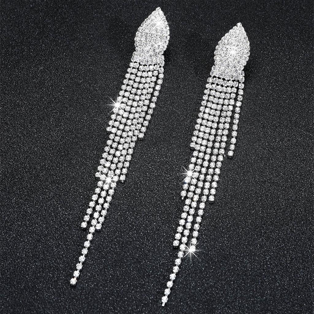 Серьги Темперамент Серьги Европа и США Мода Роскошь Ультра-блестящие Полные Бриллиантов Длинные Кисточки Серьги Женские