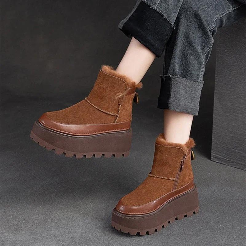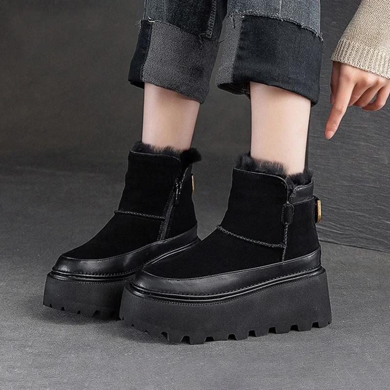 2024 Женская обувь Ботинки женские с боковой молнией Модные повседневные ботинки с круглым носком Женская зимняя обувь на бархатной платформе для женщин