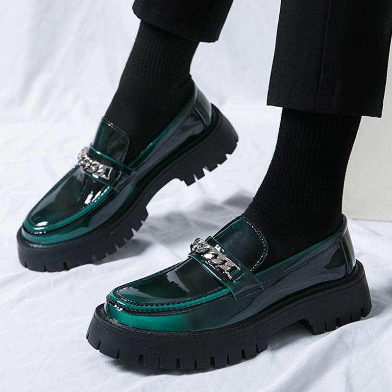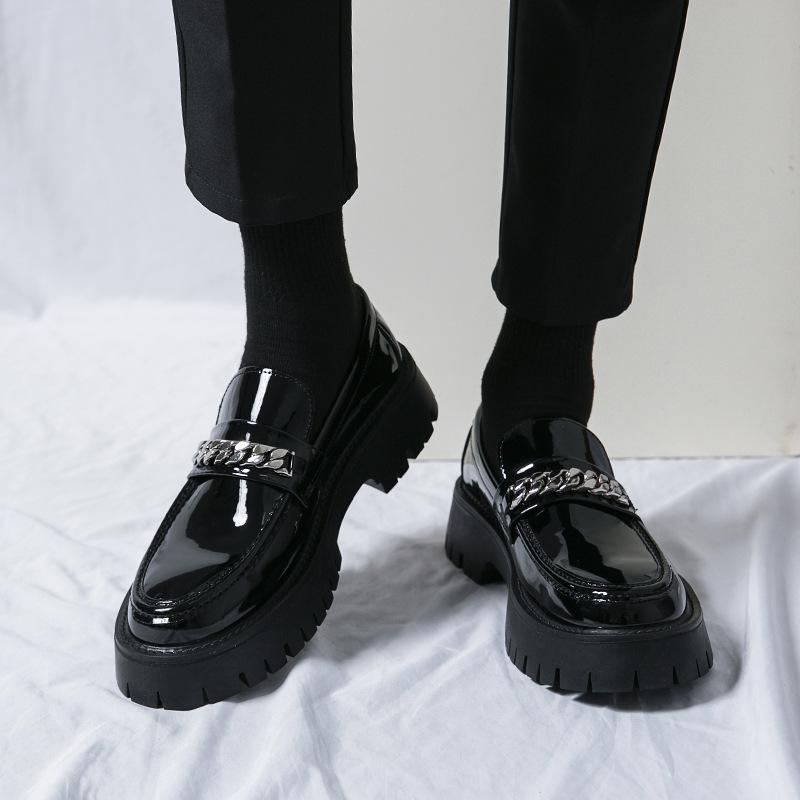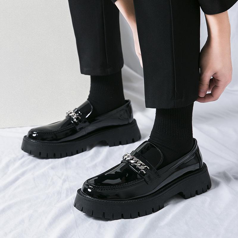 Мужские лоферы из лакированной кожи в британском стиле, мужские повседневные туфли на платформе с цепочкой, мужские оксфорды, модная уличная обувь