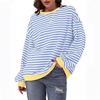 Женская повседневная футболка с круглым вырезом и длинным рукавом в полоску