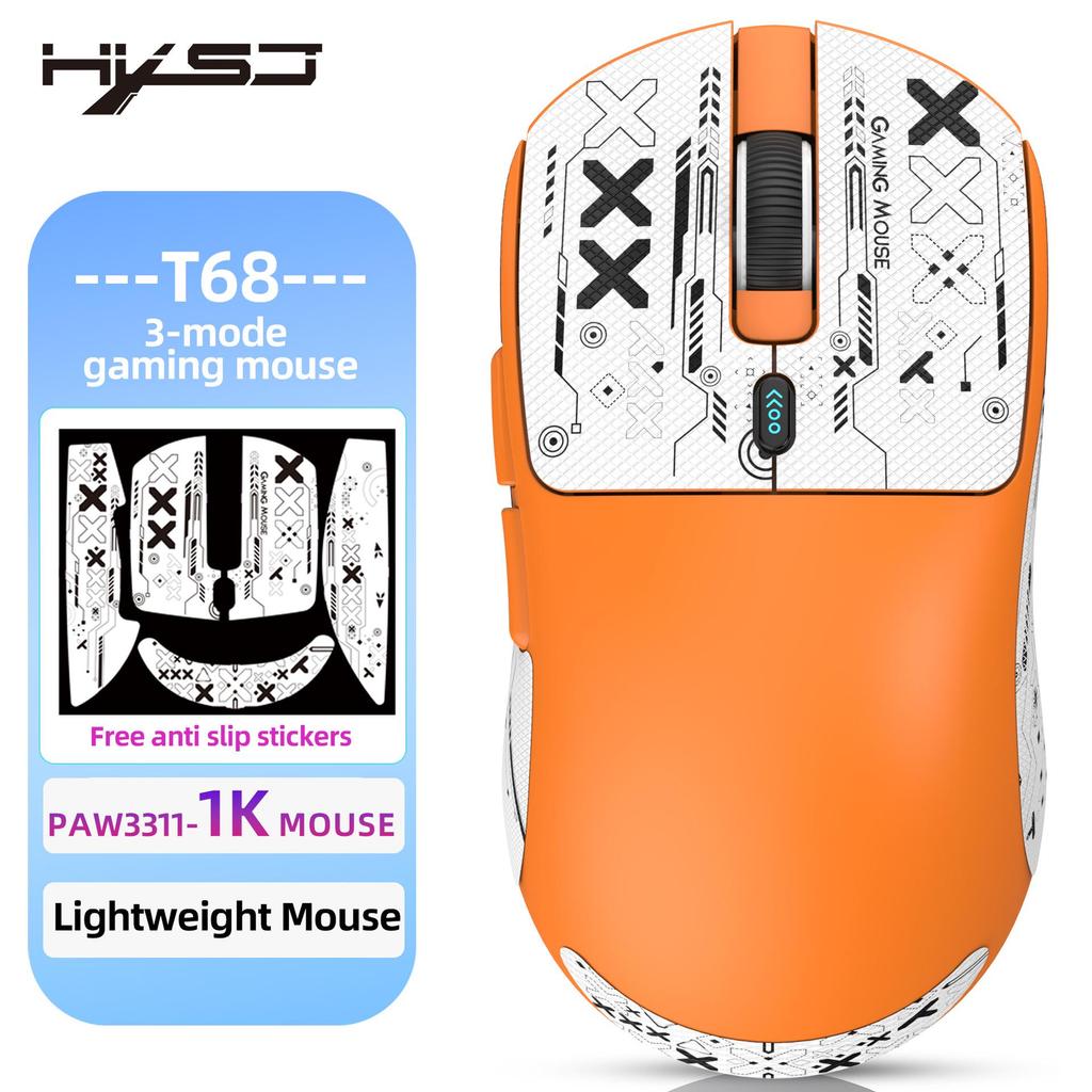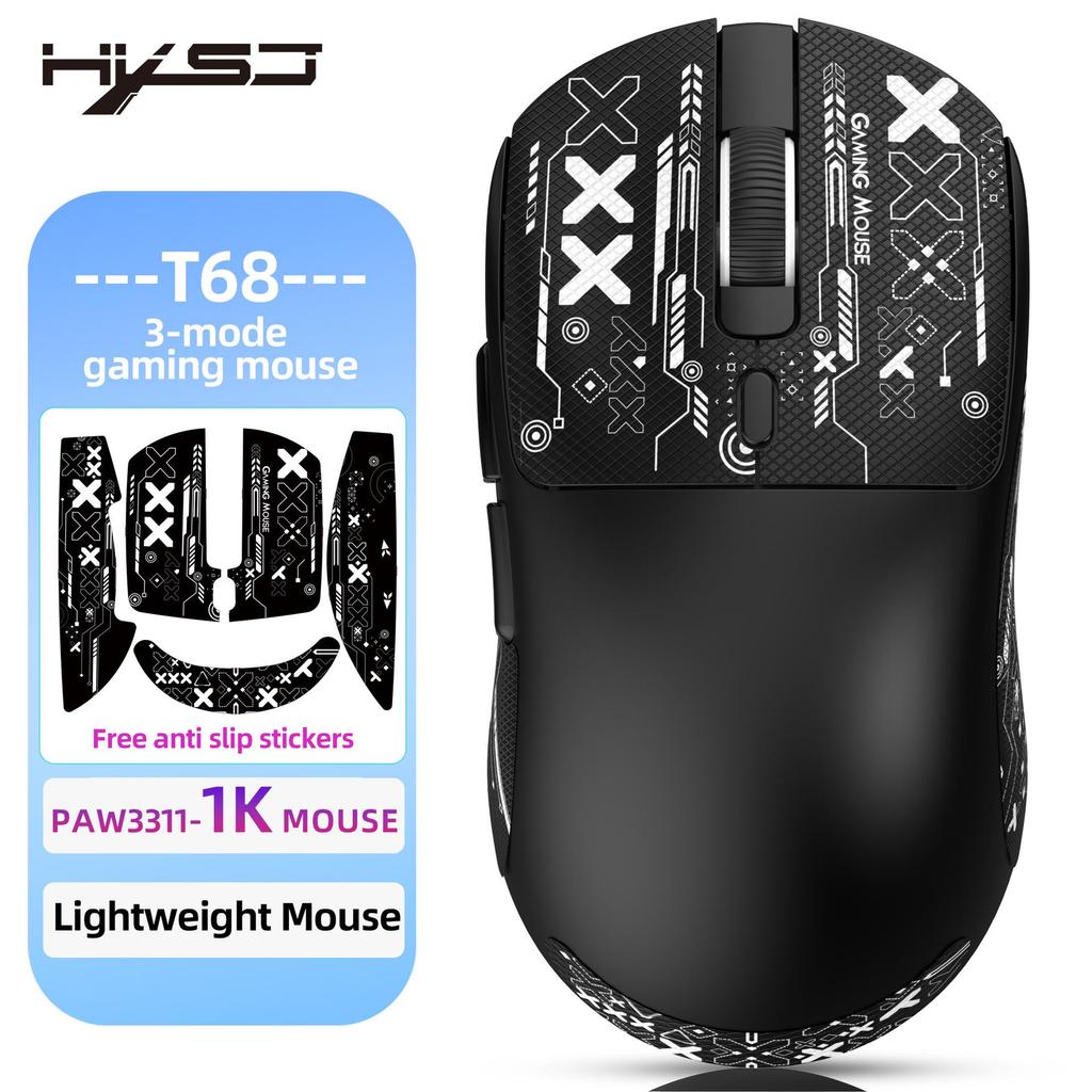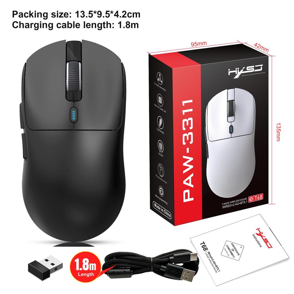 Легкая игровая мышь T68 с тремя режимами, 7 программируемых кнопок, микропереключатель TTC, 12000 точек на дюйм.