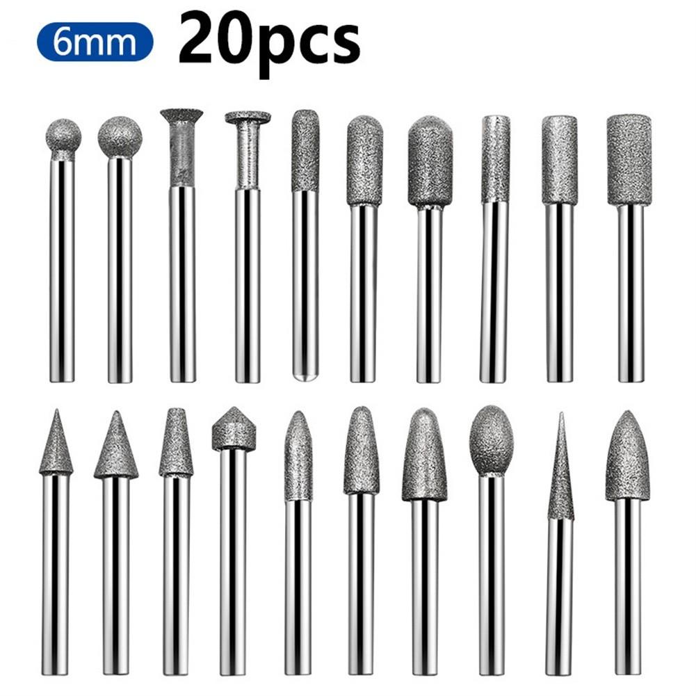 Grinding Head 20pcs 6mm Shank Grinding Needle Emery Grinding Rod