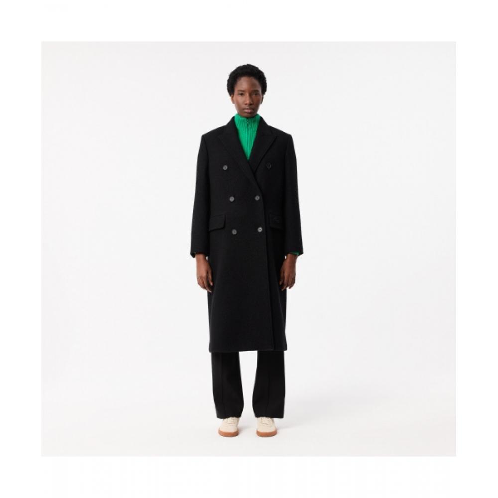LacoSte Women S Double breaSted Long Coat [black] — купить товар онлайн с бесплатной доставкой до всему миру!