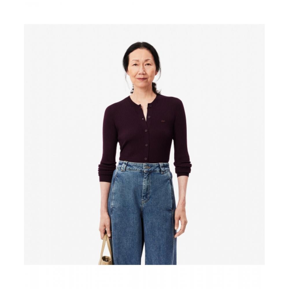 Lacoste Женский кардиган S Slim Fit Ribbed Crewneck [темно-коричневый]