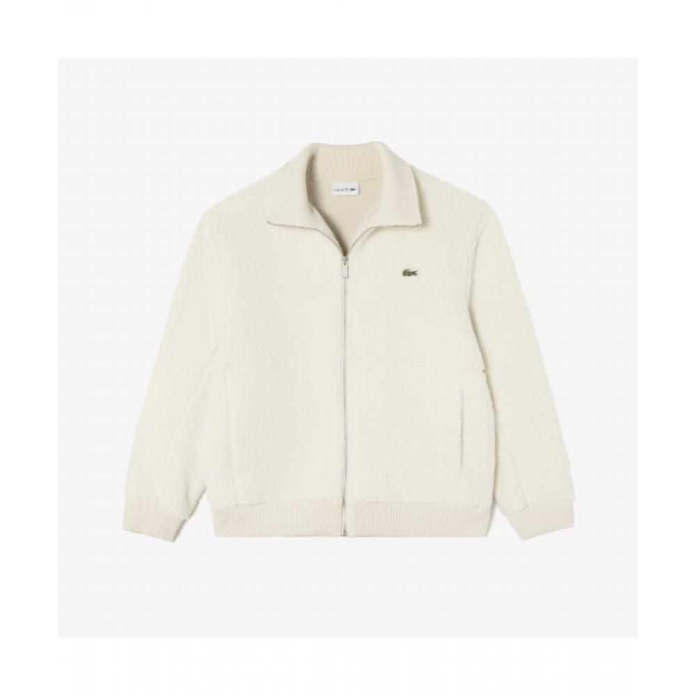 Lacoste Мужская флисовая куртка с широким ребристым воротником [кремовый] — купить товар онлайн с бесплатной доставкой до всему миру!