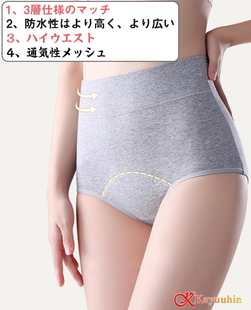 Набор из 3 гигиенических менструальных трусиков с высокой 3-слойной дышащей сеткой для дневного ношения и гигиенических трусиков с высокой мягкой дышащей и влагопоглощающей прокладкой 3 [Kayuuhin]