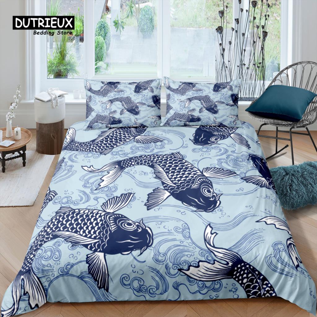 Роскошный 3D комплект постельного белья с карпами для дома, удобный комплект пододеяльника, детский комплект постельного белья, размер Queen и King EU/US/AU/UK