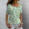 Новая модная футболка с V-образным вырезом, летний цветочный принт, короткий рукав, женская повседневная базовая футболка, женские винтажные элегантные топы