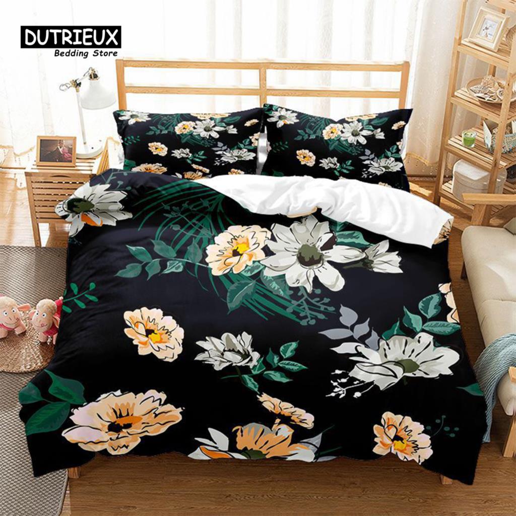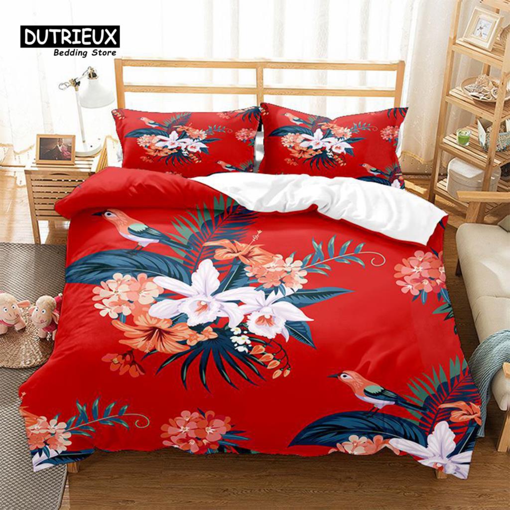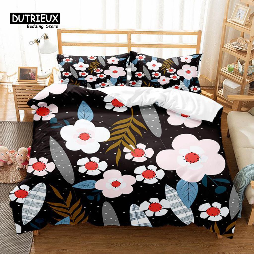 Цветочный Постельный Комплект Ботанический Пододеяльник Квин Мягкий Бохо Розовые Цветы Листья Принт Чехол для Одеяла Для Детей Подростков Взрослых Декор