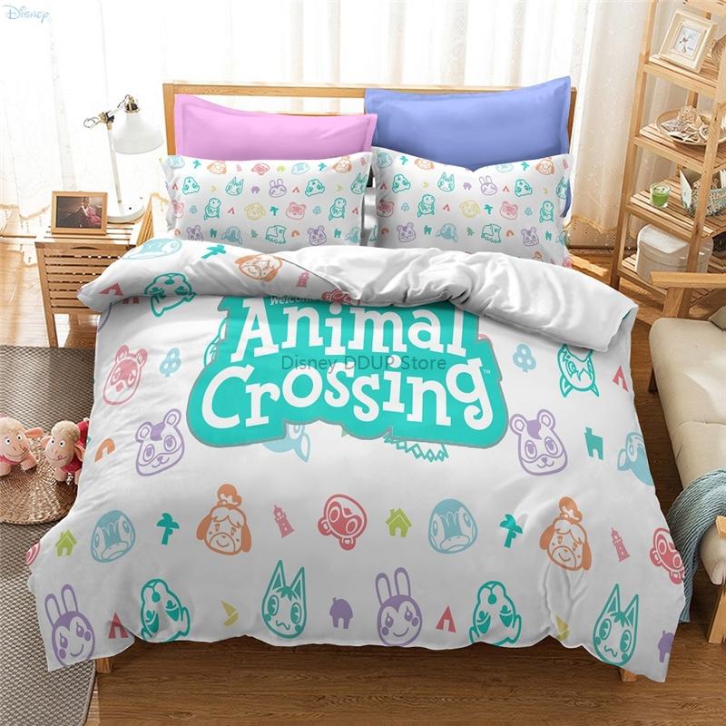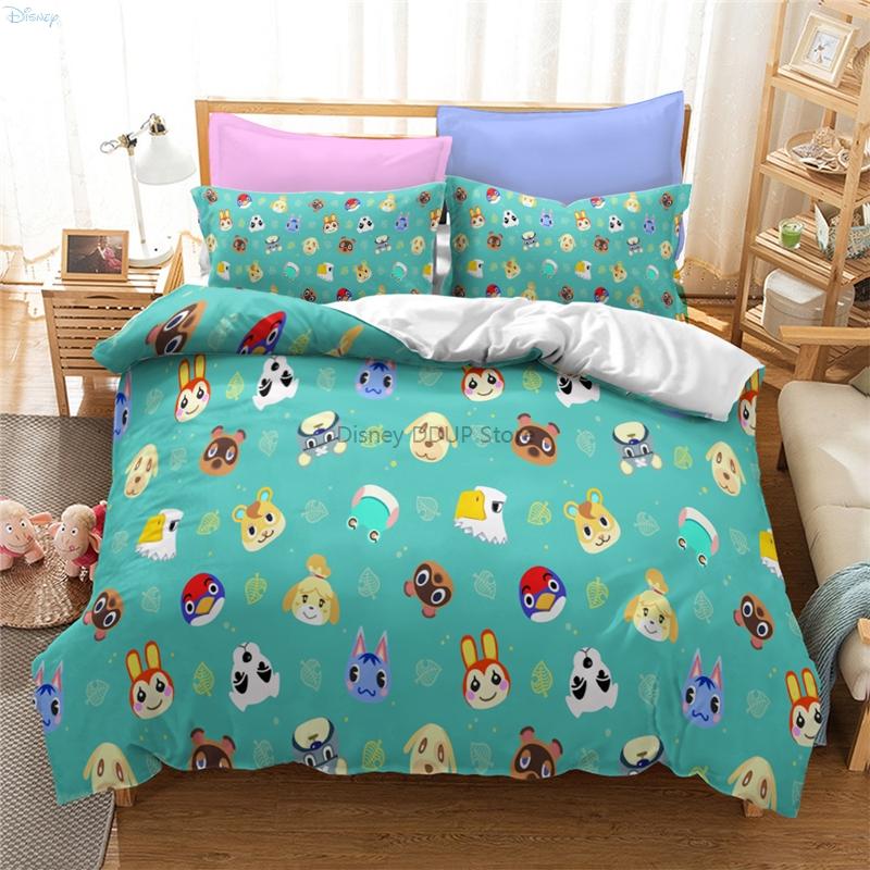 Комплект постельного белья с рисунком из игр Animal Crossing, мультяшный принт, пододеяльник с наволочкой, двуспальное постельное белье размера Queen King Size