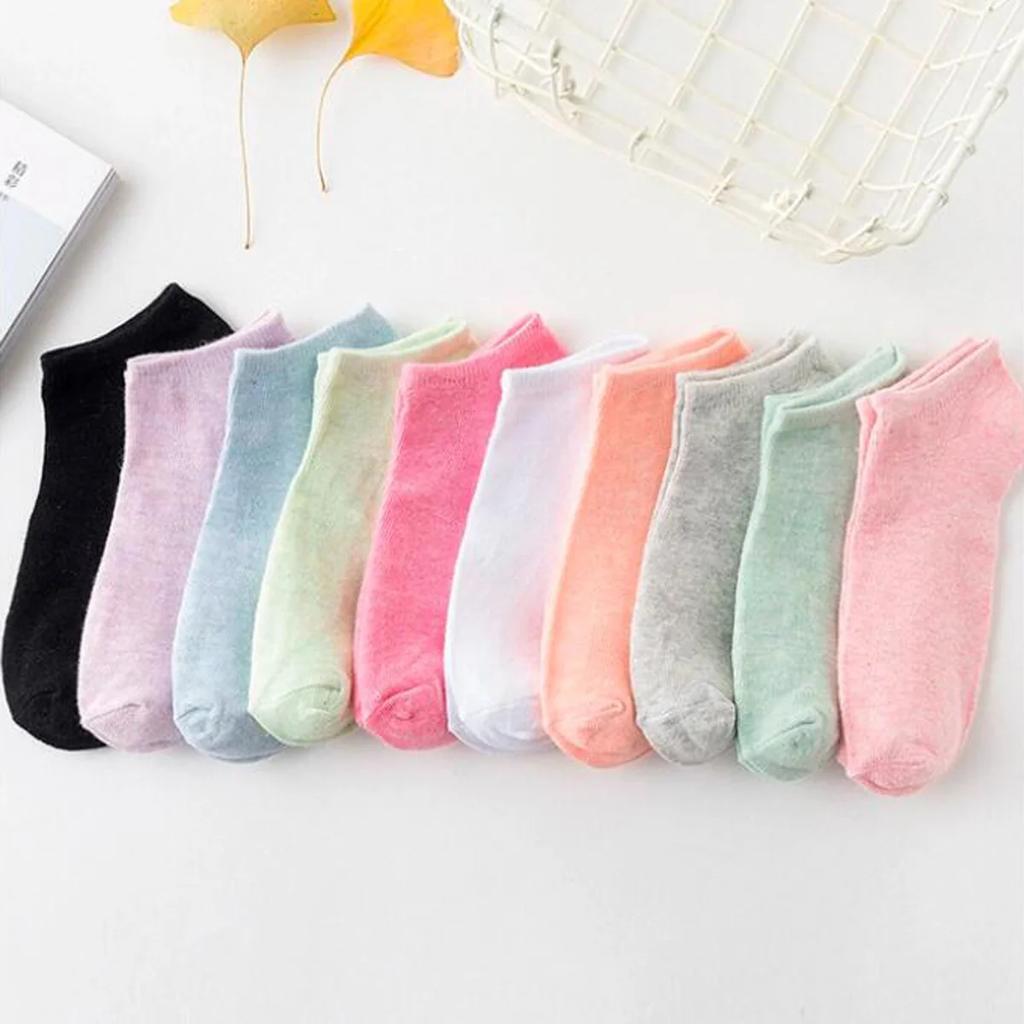 10 пар женских носков до щиколотки, весна-лето, однотонные, пастельные, конфетные цвета, невидимые, с низкой посадкой, носки-лодочки, дышащие