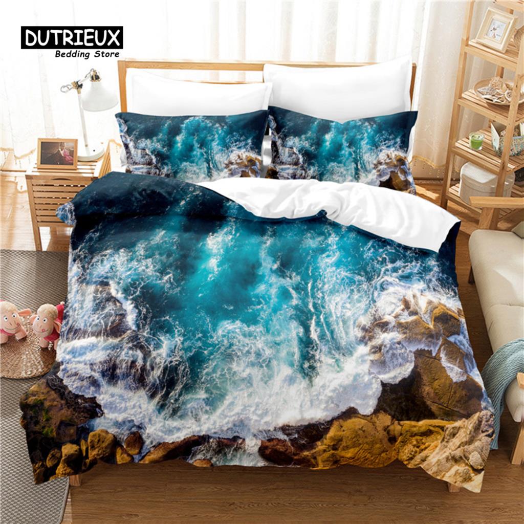 Красивый комплект постельного белья с изображением океана, комплект из 3 пододеяльников, мягкий, удобный, дышащий пододеяльник, для декора спальни и гостевой комнаты