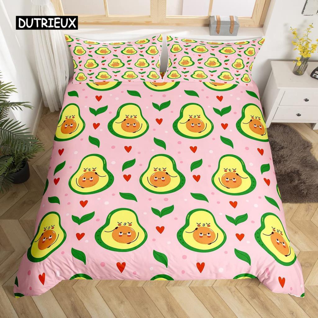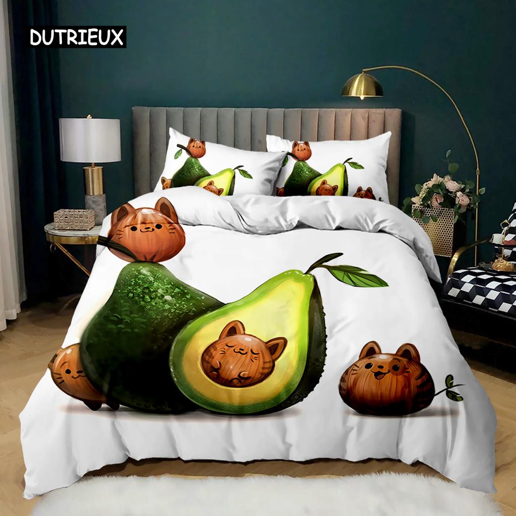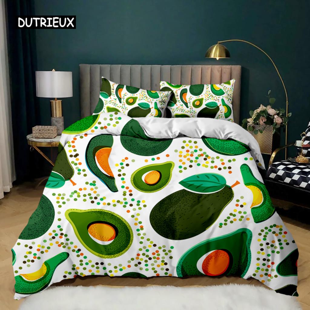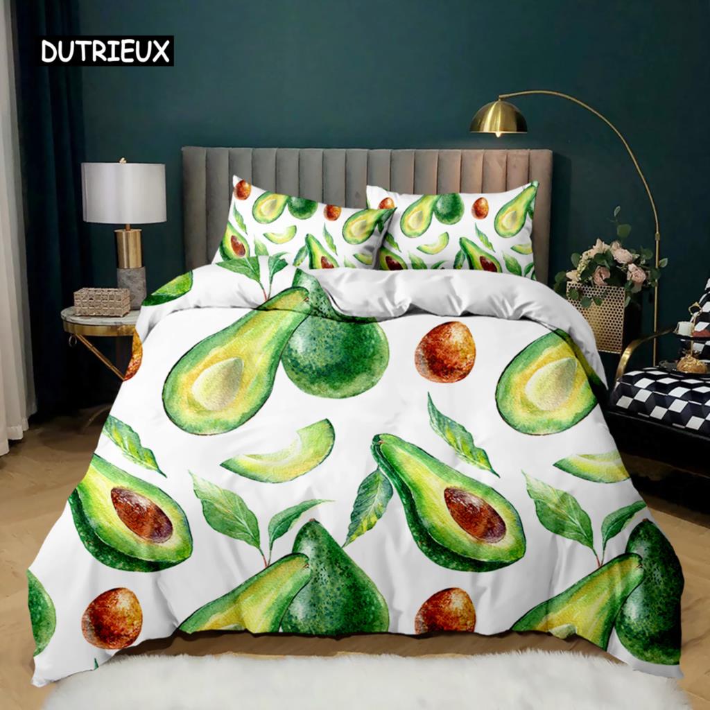 Комплект постельного белья с авокадо Комплект постельного белья с милыми фруктами Покрывало для одеяла Queen Tropical Botanical Cartoon Полиэстеровое одеяло