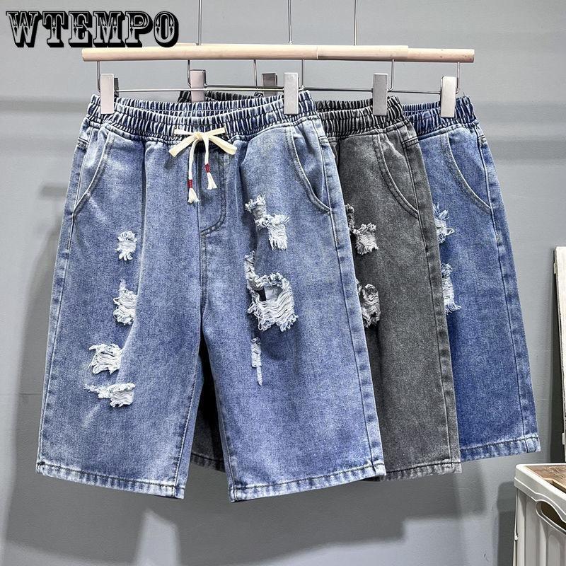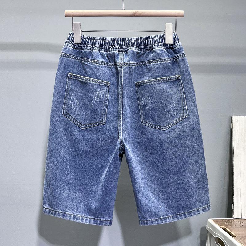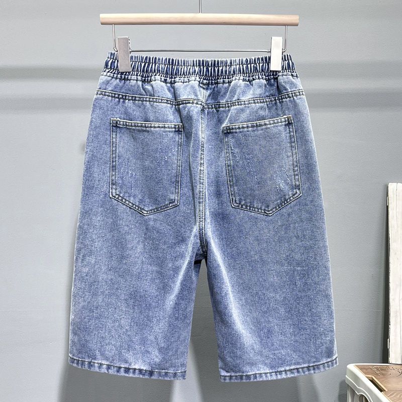 Мужские джинсовые шорты с тонкими бретелями, летние трендовые свободные прямые дышащие повседневные шорты для дома, пляжа и отдыха с пятью точками