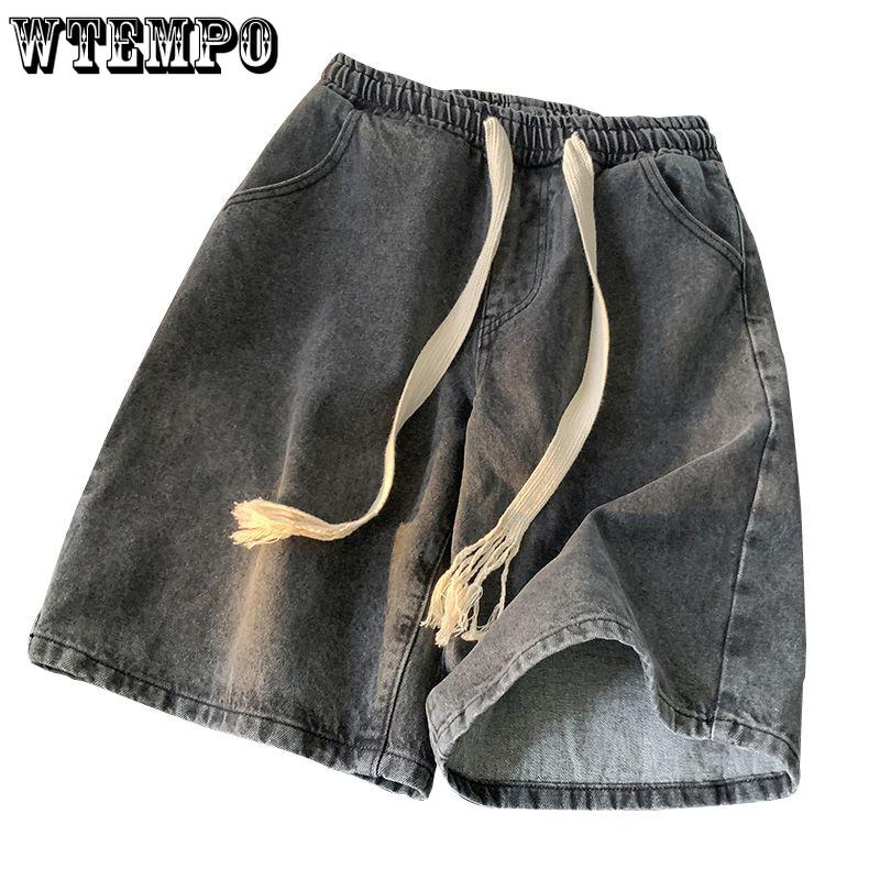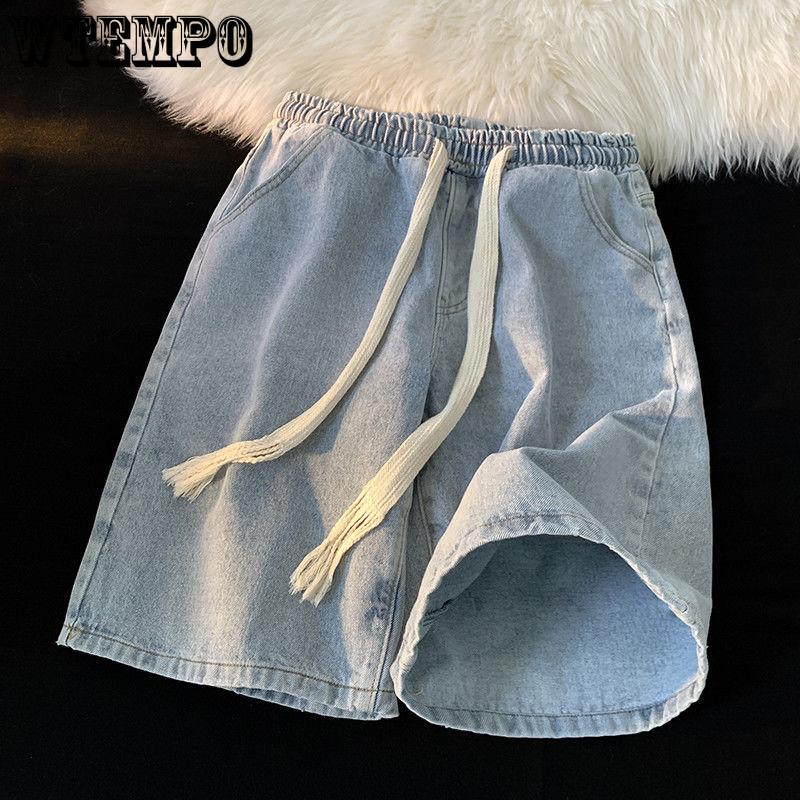 Джинсовые шорты летние тканые шорты на шнурке мужские тонкие повседневные ретро свободные большие ярды с пятью точками