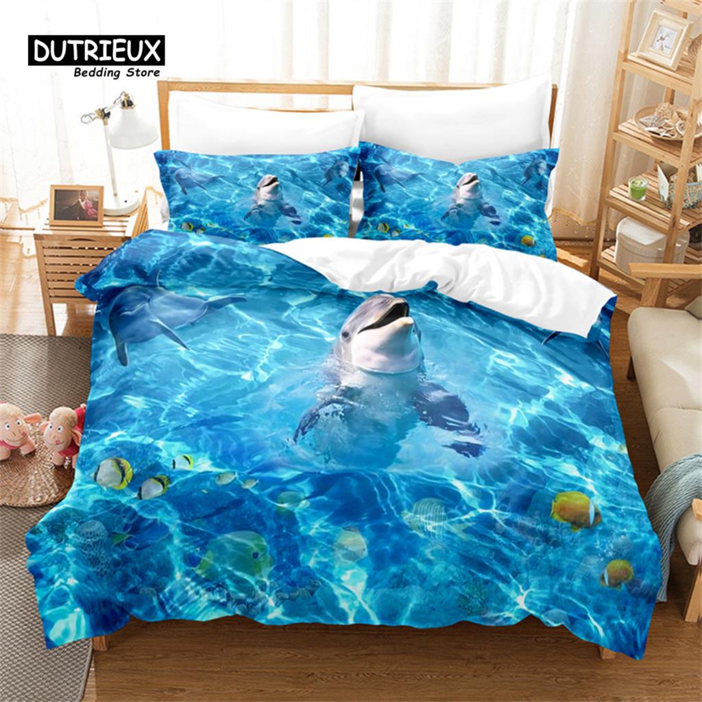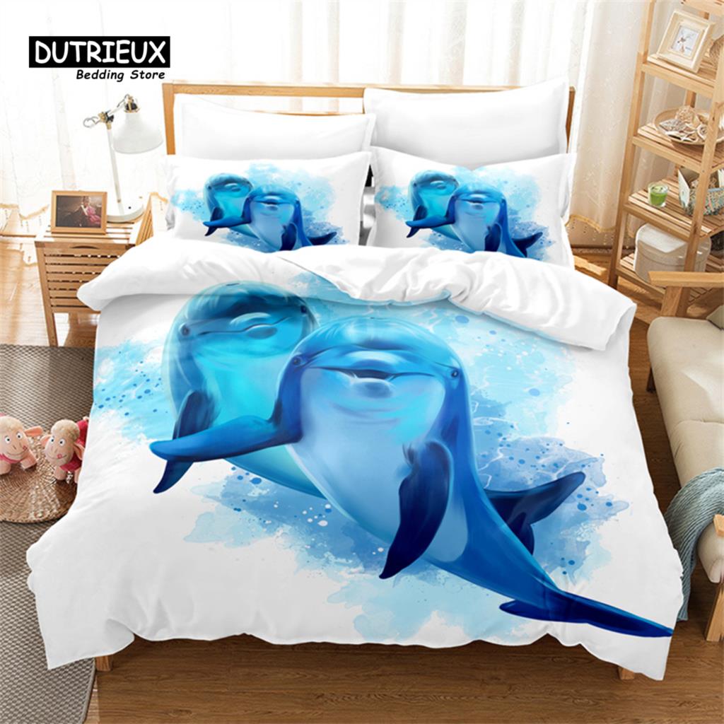 Комплект пододеяльника с дизайном голубого дельфина, Модный постельный комплект, Мягкий удобный дышащий пододеяльник, Для декора спальни, гостевой комнаты