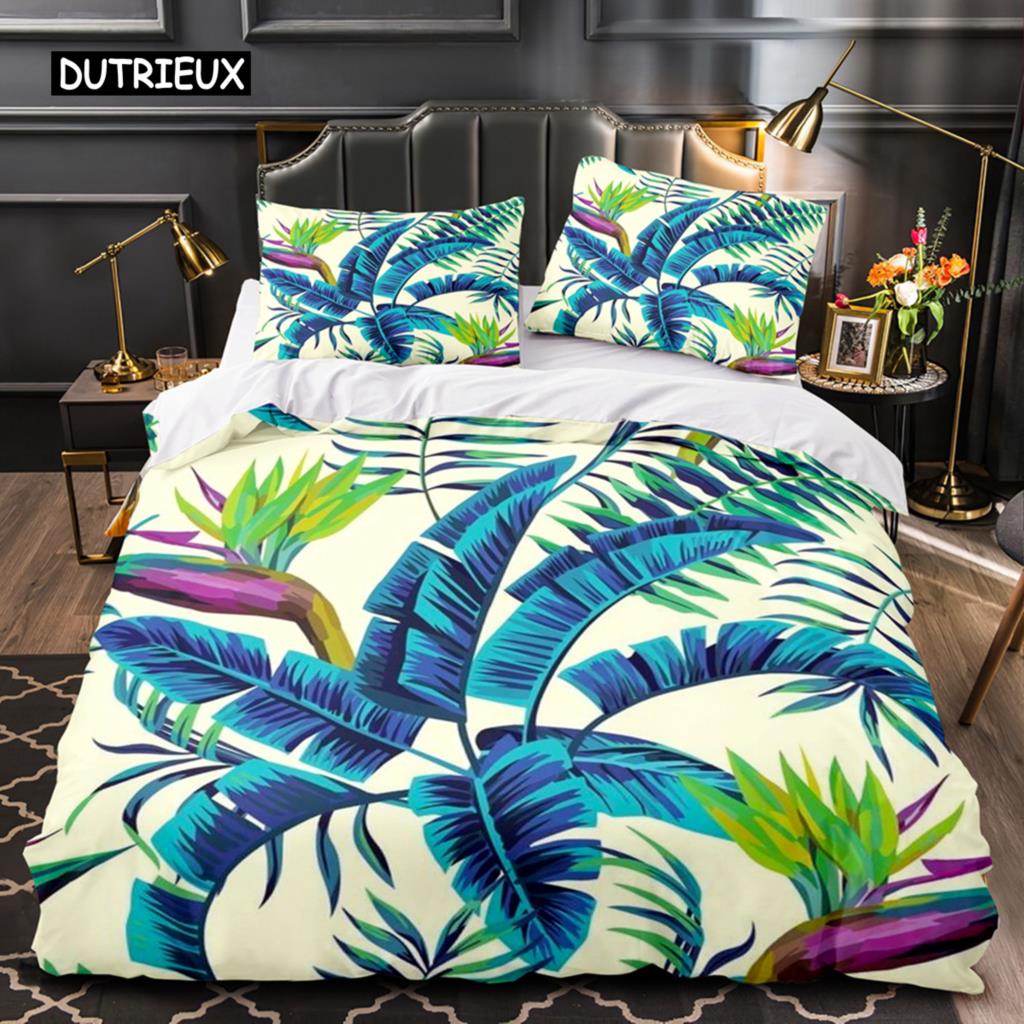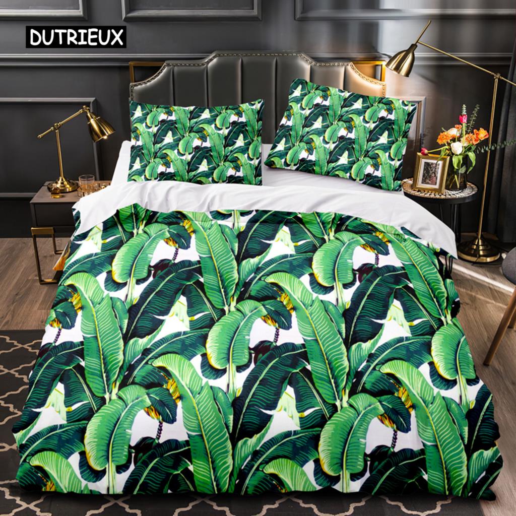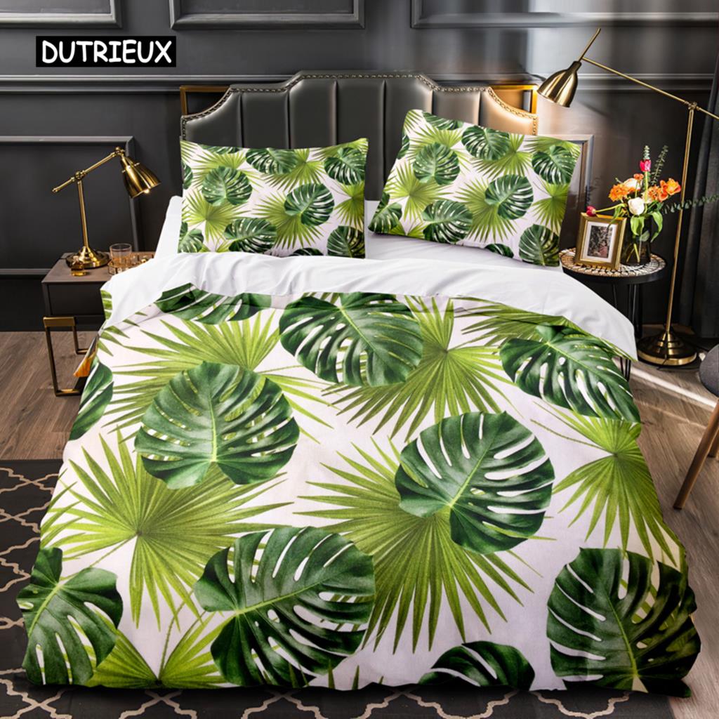 Зеленые листья тропический пододеяльник пальмовый лист королева король комплект постельного белья одеяло полиэстер пододеяльник для женщин мужчин спальня декор
