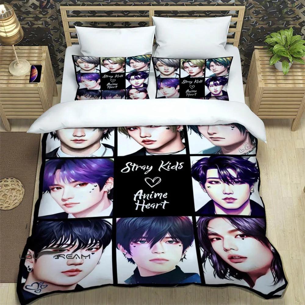 KPOP S-Stray-K-Kids принт Комплекты постельного белья изысканный комплект постельного белья пододеяльник комплект постельного белья роскошный подарок на день рождения