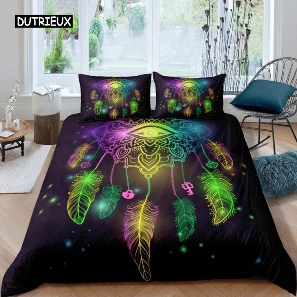 Пододеяльник Dream Catcher Dream Catcher Galaxy Комплект постельного белья Boho Перьевое одеяло Покрывало в индийском племенном стиле Мягкий полиэстеровый пододеяльник
