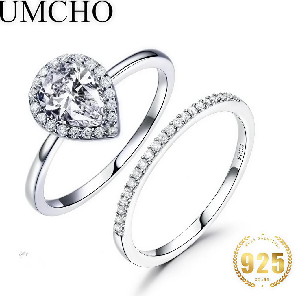 Два кольца с круглым кубическим цирконием AAA из стерлингового серебра 925 пробы, свадебные украшения, кольца с каплями воды из серебра 925 пробы