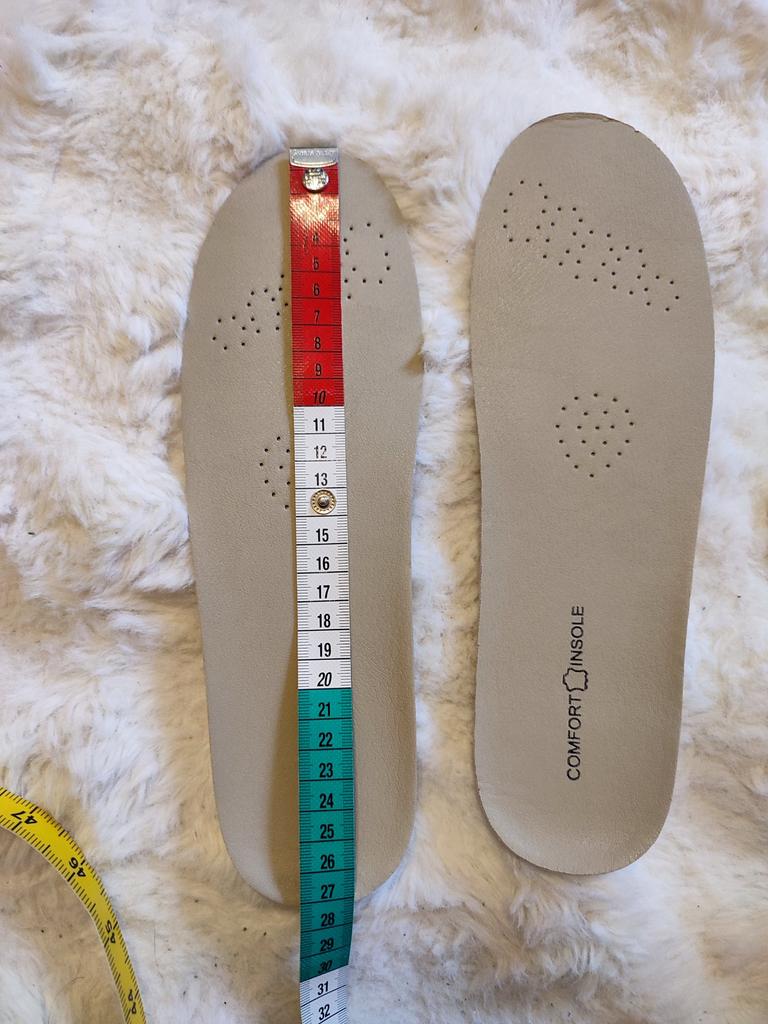 Серьёзные стельки из кожи и латекса. В размере 43 длина стелек на фото.