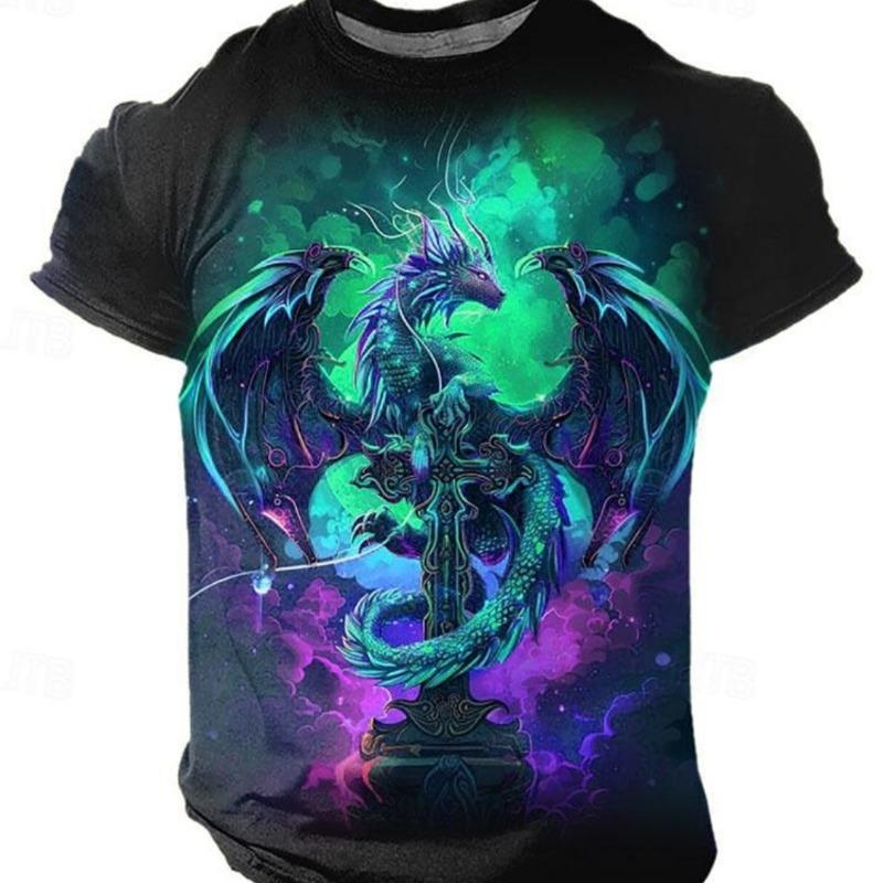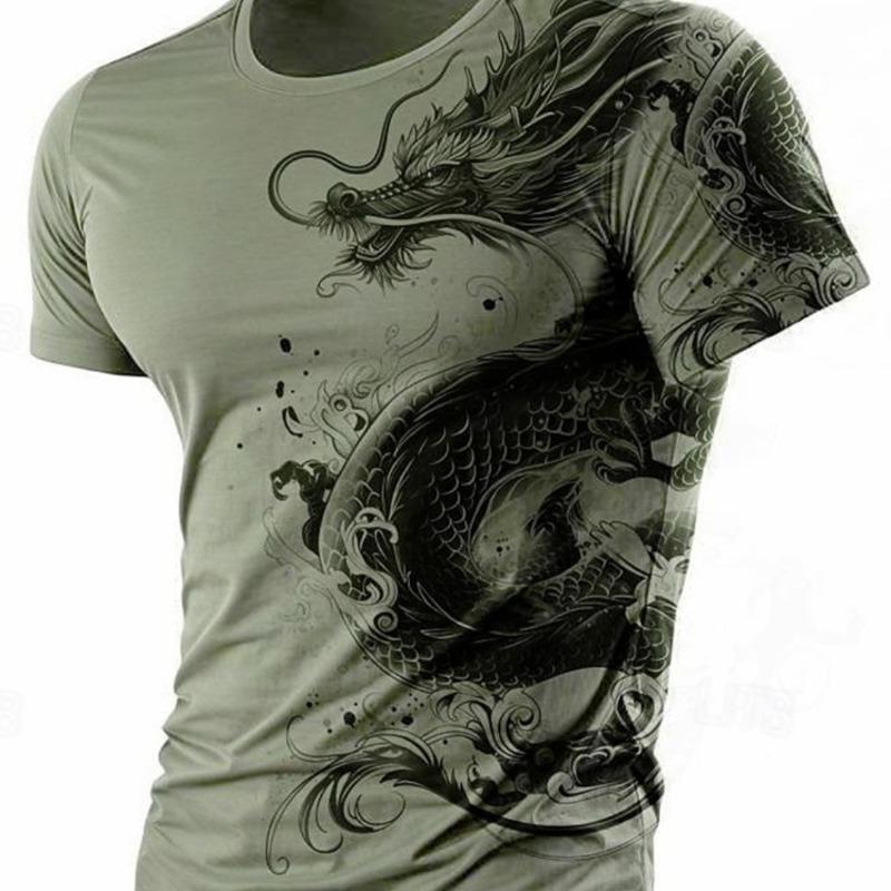 Мужская футболка с 3D-принтом и рисунком дракона, повседневная уличная одежда, для занятий спортом на открытом воздухе, с короткими рукавами, городская мода, лето