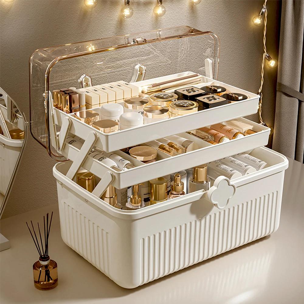 3-слойный органайзер для хранения косметики, большая вместимость, органайзер для средств по уходу за кожей, коробка для хранения помады, теней для век, косметический органайзер