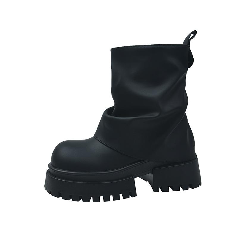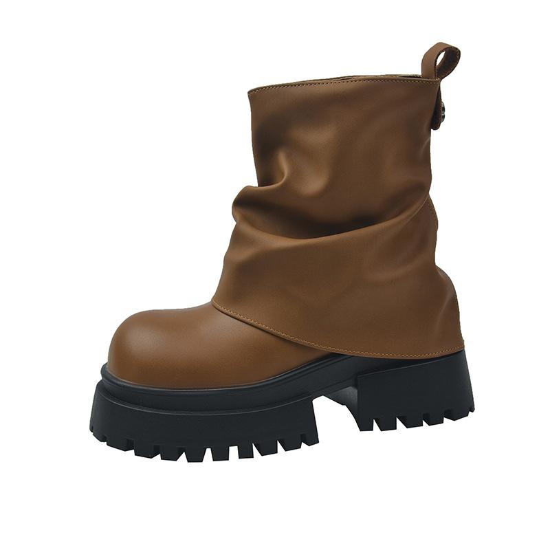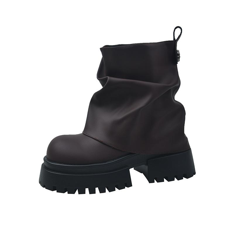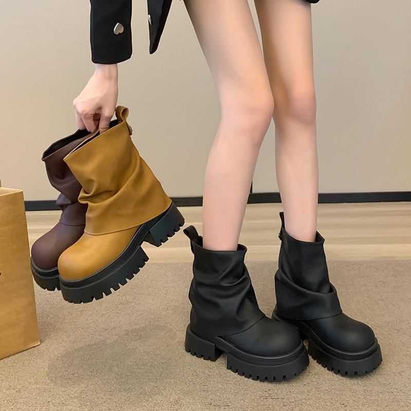2024 новые плиссированные круглые сапоги на толстой подошве в британском стиле, модные ботинки на толстом каблуке, короткие сапоги-трубы, женские