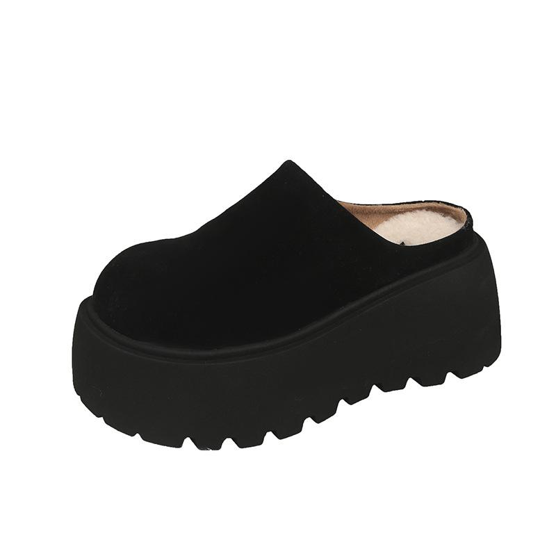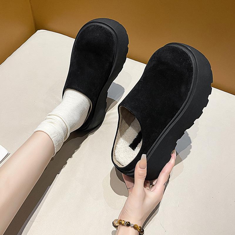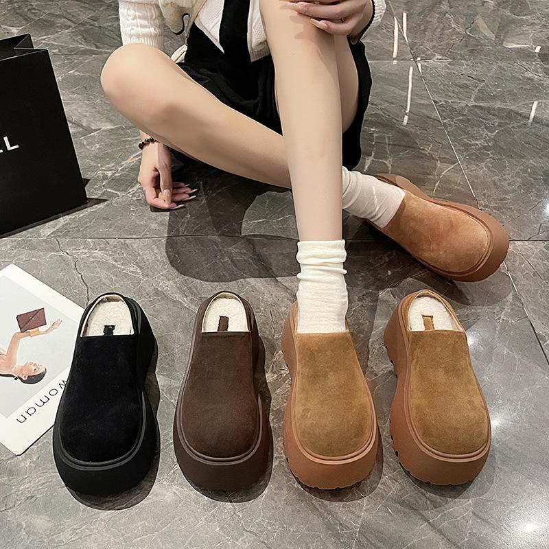 2024 осенние полутапочки из бархата с круглой головкой и мешковиной в стиле ретро для женщин с толстой подошвой, повседневная одежда из теплых хлопковых тапочек