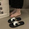 2024 летние новые нишевые простые односложные классные тапочки на плоской подошве женские пляжные туфли с открытым носком на мягкой подошве