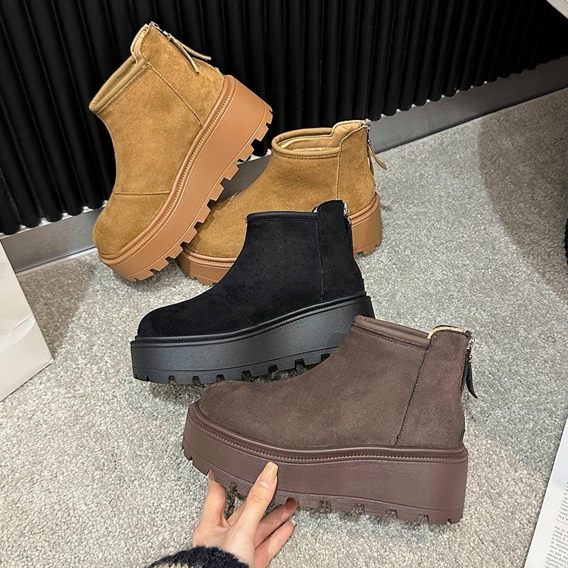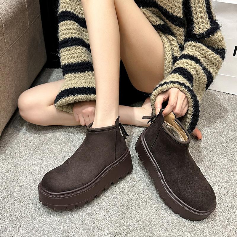 2024 новые теплые ботинки Muffin Ice, зимние, на толстой подошве, бархатные, в британском стиле, с застежкой-молнией сзади, короткие женские ботинки Martin, прилив