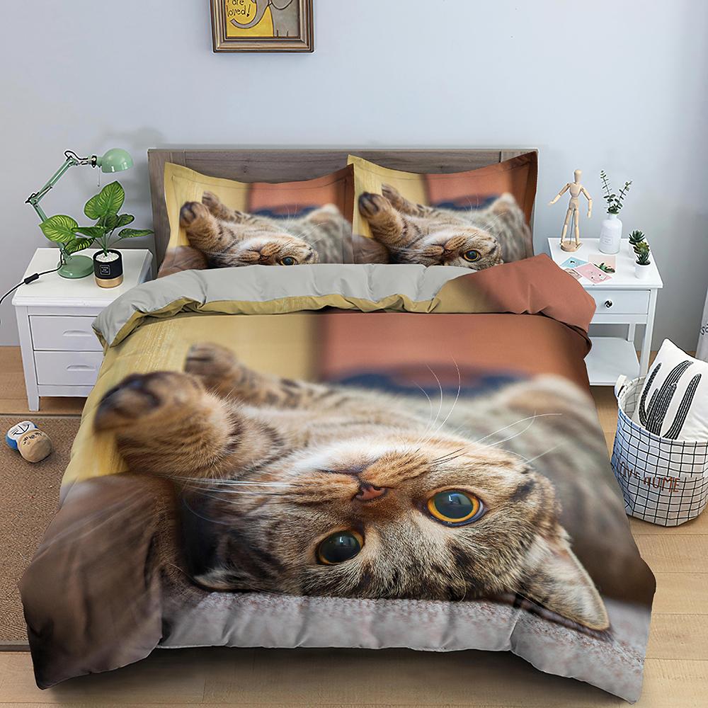 Астронавт в космосе Кот для девочек мальчиков подростков милый рисунок питомца пододеяльник 3D печатный пододеяльник для украшения спальни размер Queen