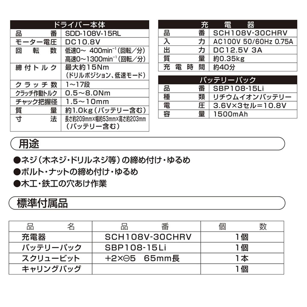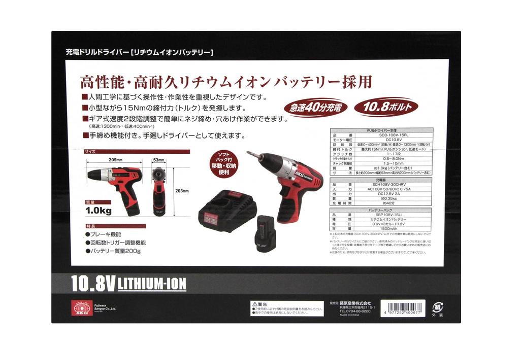 Аккумуляторная дрель-шуруповерт SK11 (СК11) 10.8В SDD-108V-15RLS