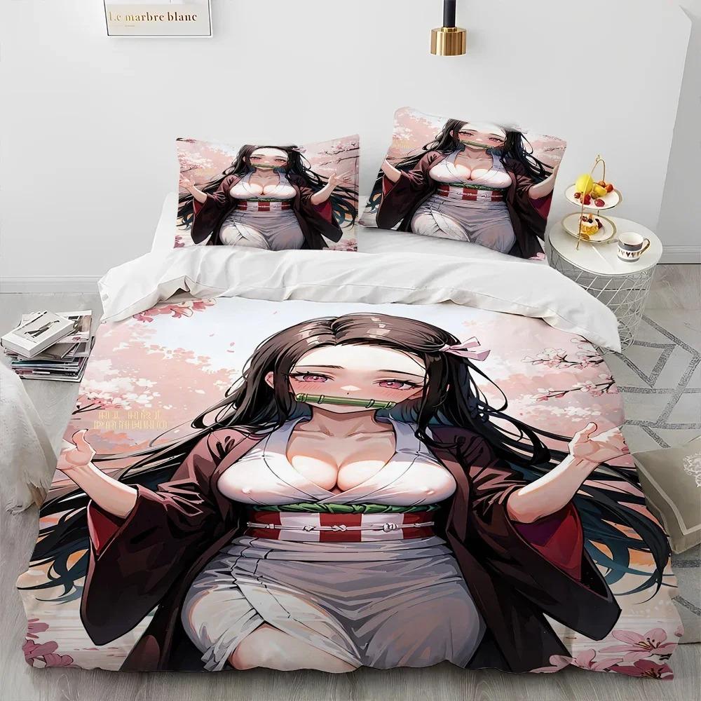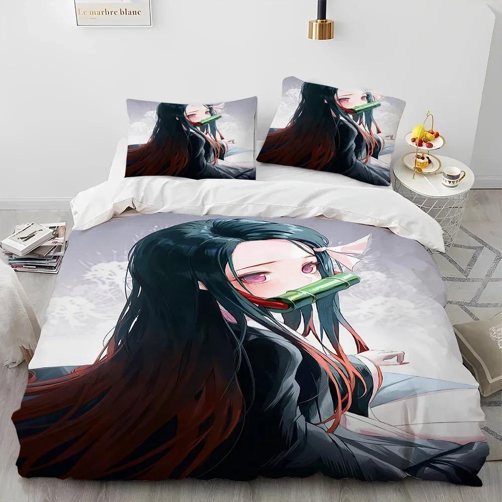 Комплект постельного белья из 3 предметов с рисунком «Аниме», «Убийца демонов», пододеяльник с принтом, комплект постельного белья, удобная дышащая роскошная простыня из хлопка