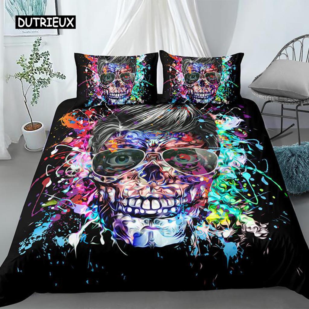 Комплект постельного белья с 3D-черепом, цветной готический череп, акварельный тай-дай, чехол из микрофибры, сахарный череп, комплект постельного белья размера Queen Size — купить товар онлайн с бесплатной доставкой по всему миру!