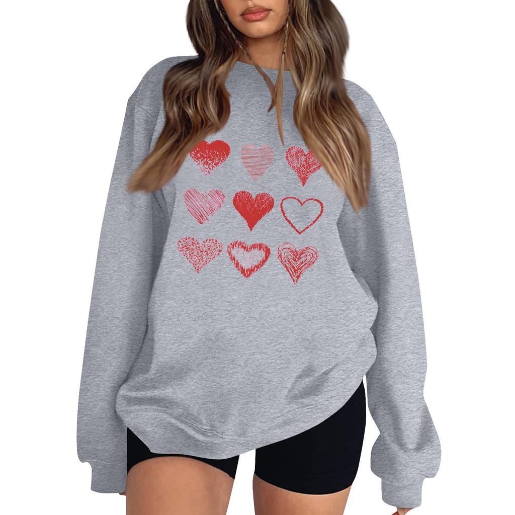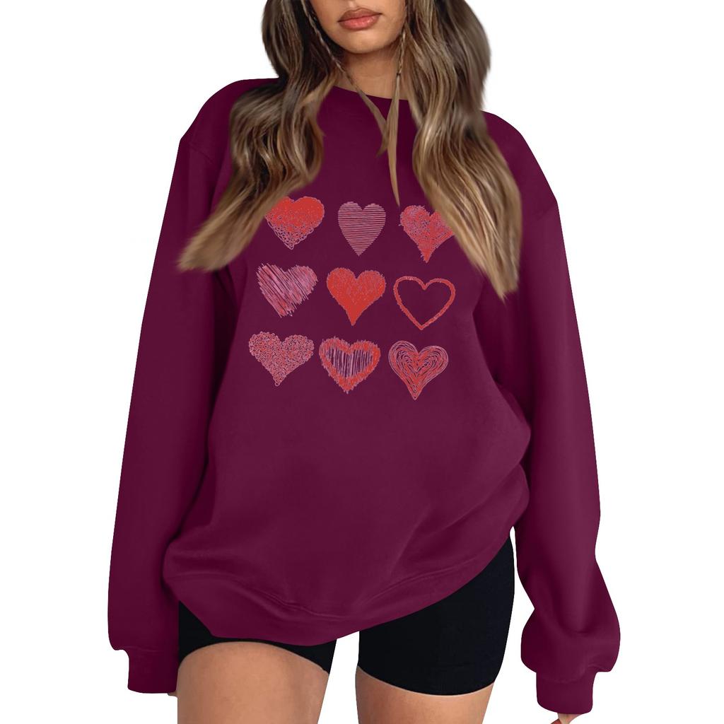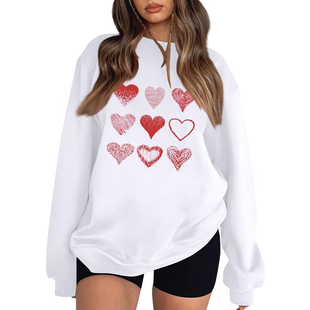 Женская повседневная мода ко Дню святого Валентина с принтом, длинным рукавом, круглым вырезом, толстовки, пуловеры, топы