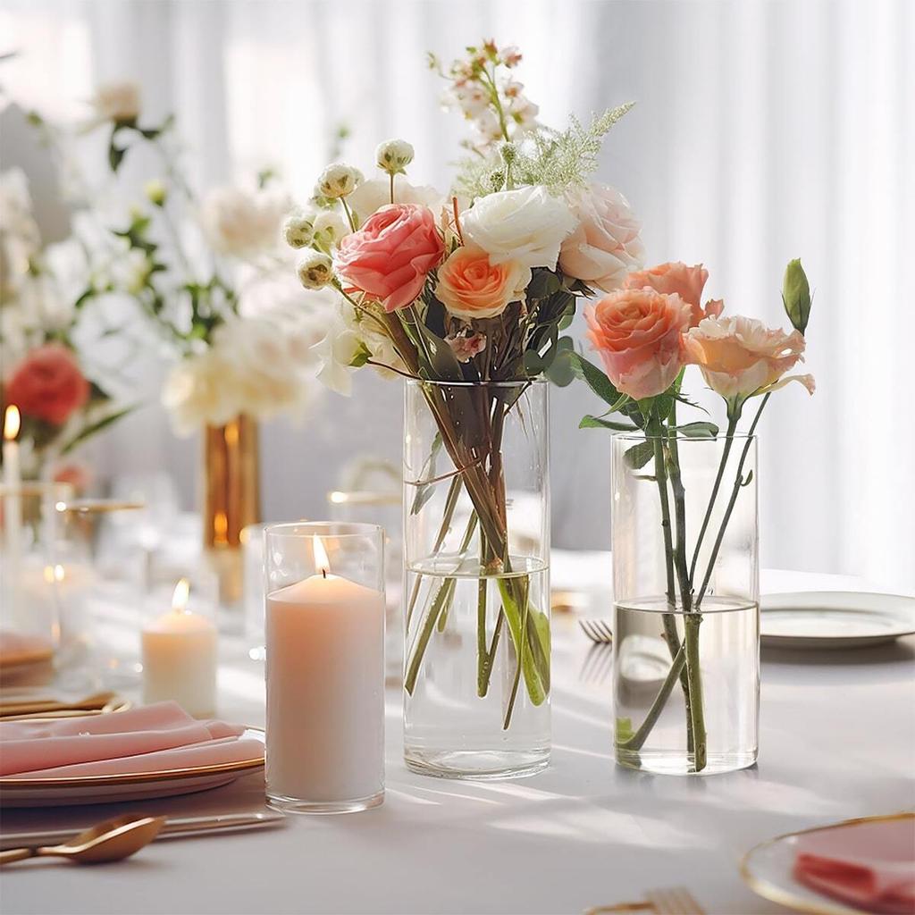 Стеклянные цилиндрические вазы, цветочные контейнеры, вазы для цветов, цилиндрические подсвечники для тонких свечей-столбов, свадебные подсвечники, декор