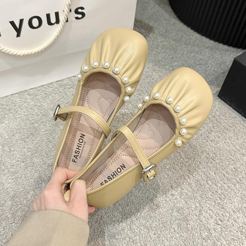2025 весна-лето серебристые французские нежные маленькие кожаные туфли женские новые вечерние туфли-лодочки Мэри Джейн с юбкой на плоской подошве