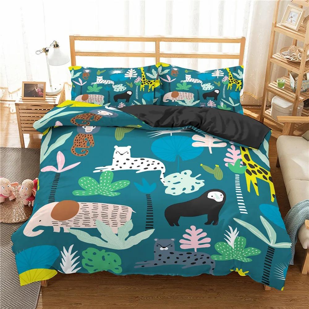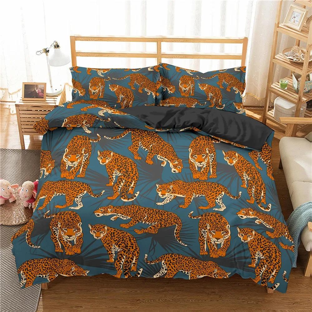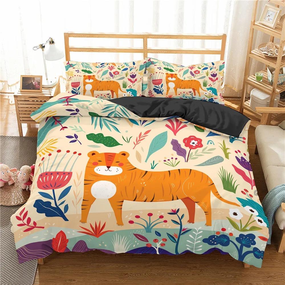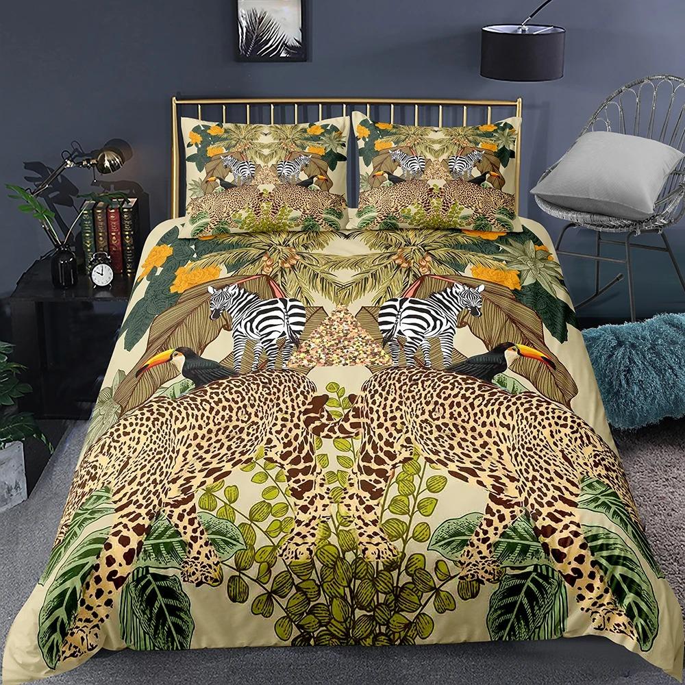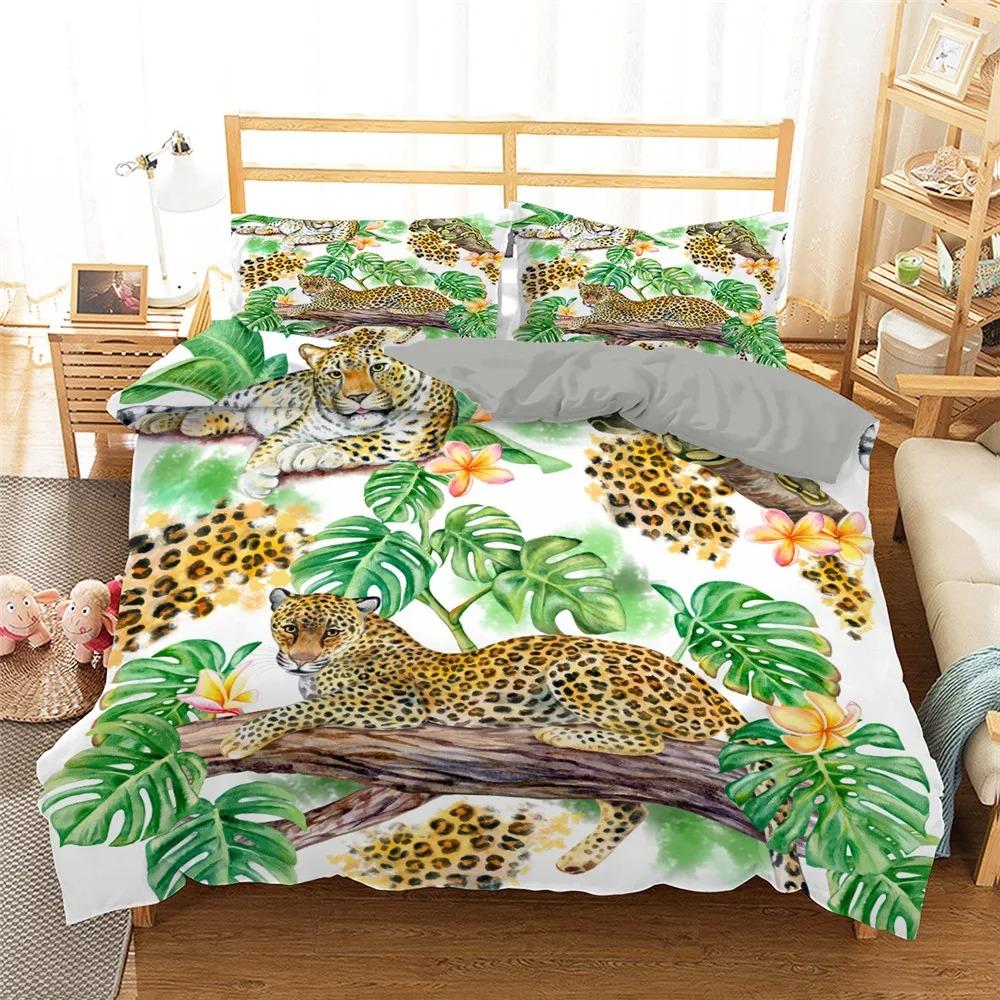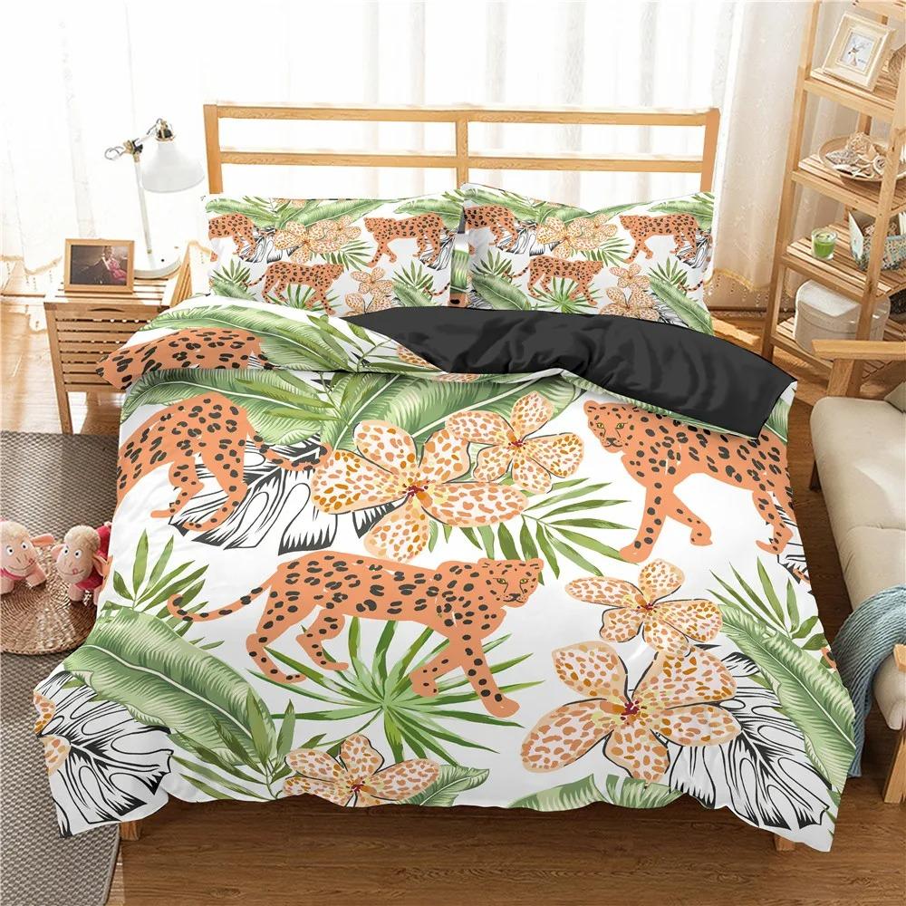 Пододеяльник с изображением животных джунглей King Queen Tropical Plants Palm Leaves Комплект постельного белья для детей Tiger Wildlife 23 шт. полиэстеровый пододеяльник