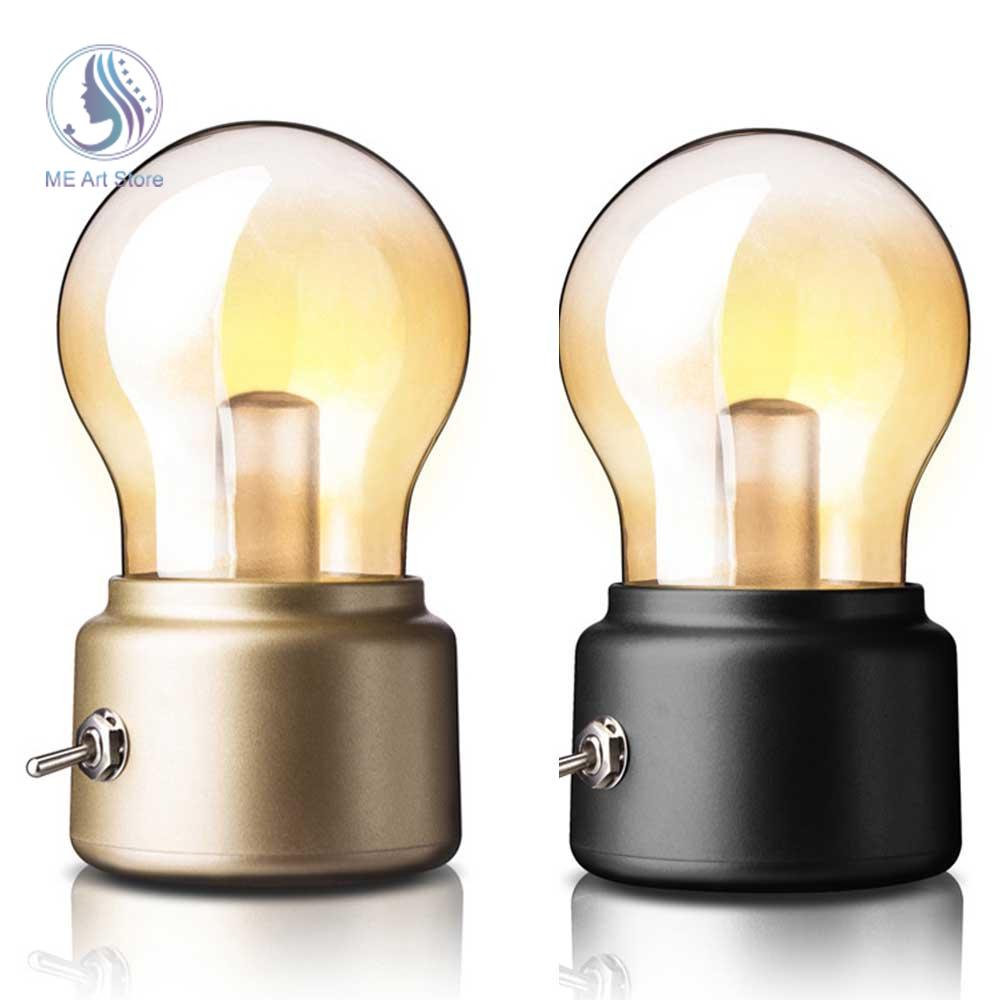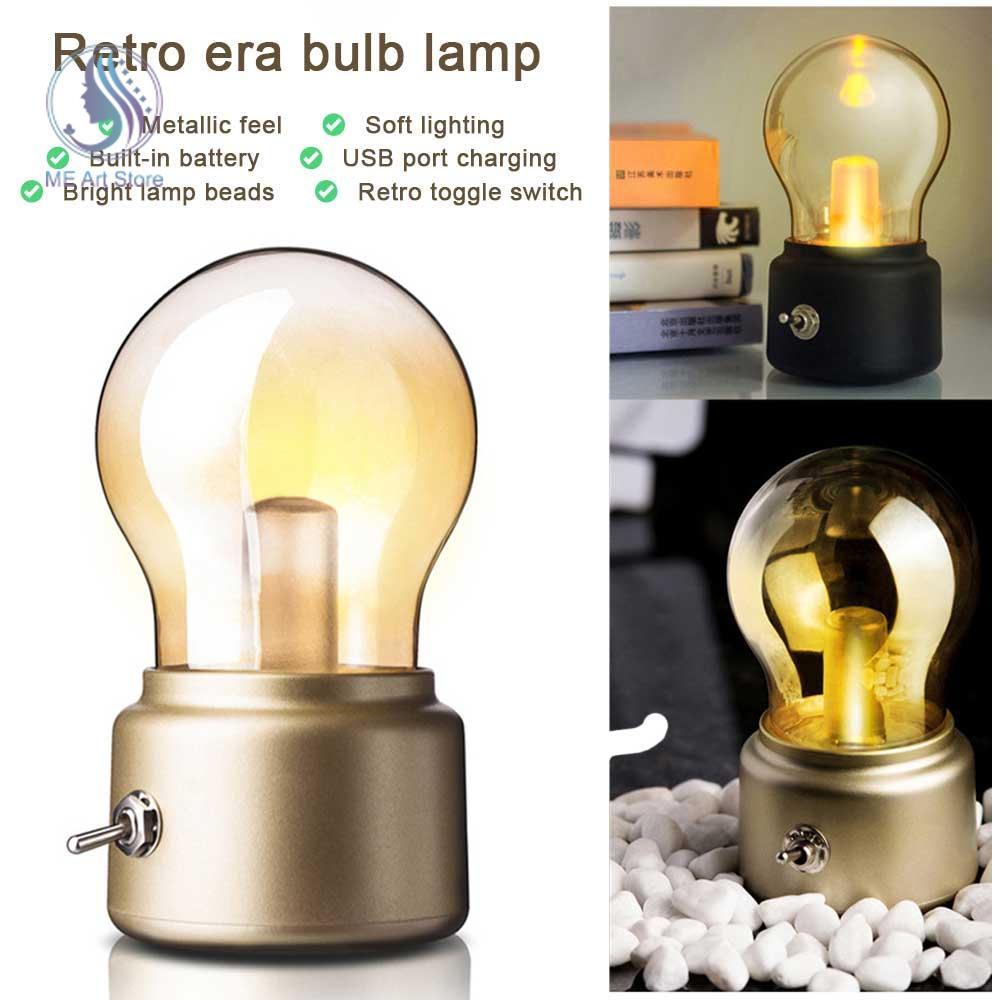 Светодиодная ночная лампа, перезаряжаемая, винтажная, беспроводная, настольная лампа в стиле ретро со стеклянным абажуром для украшения спальни