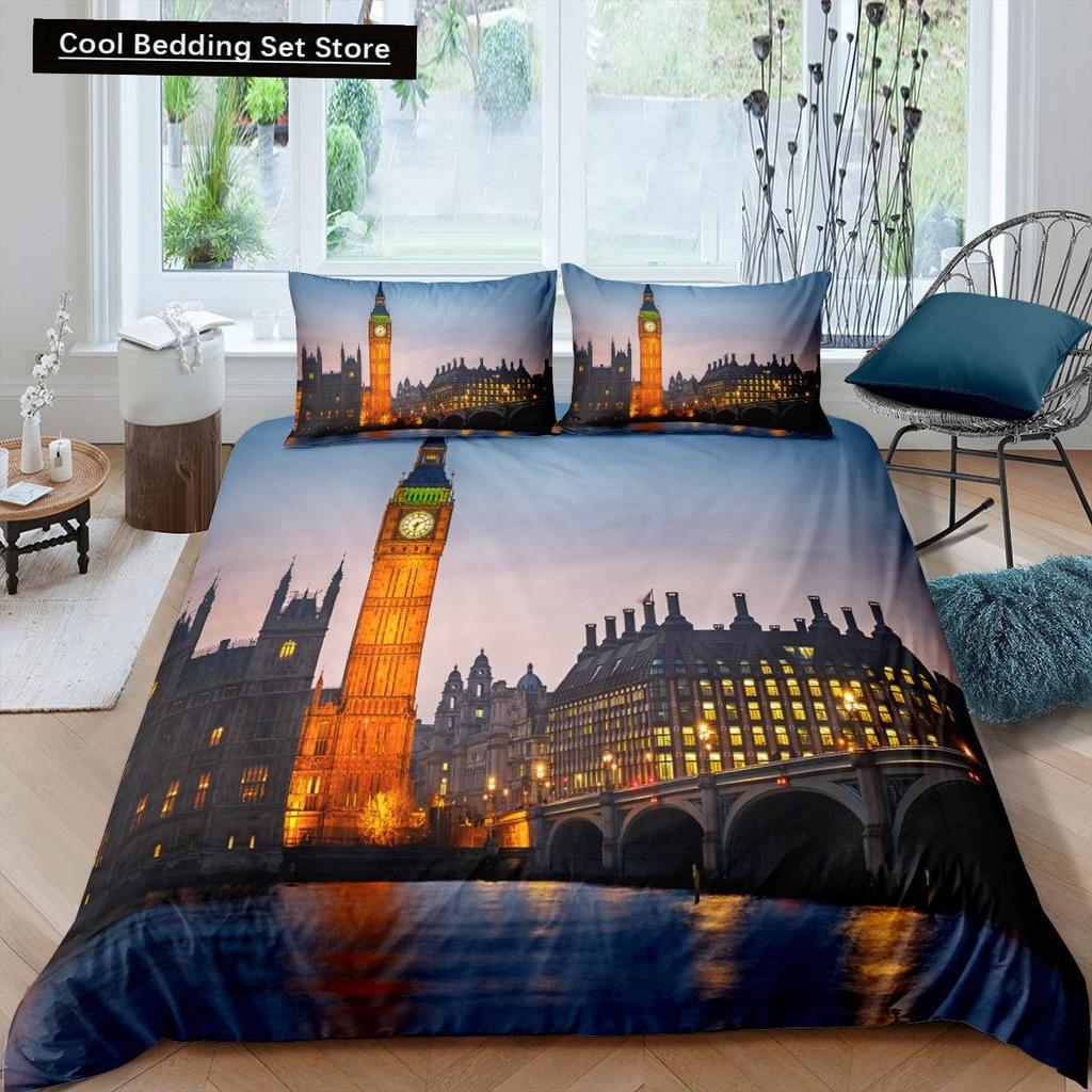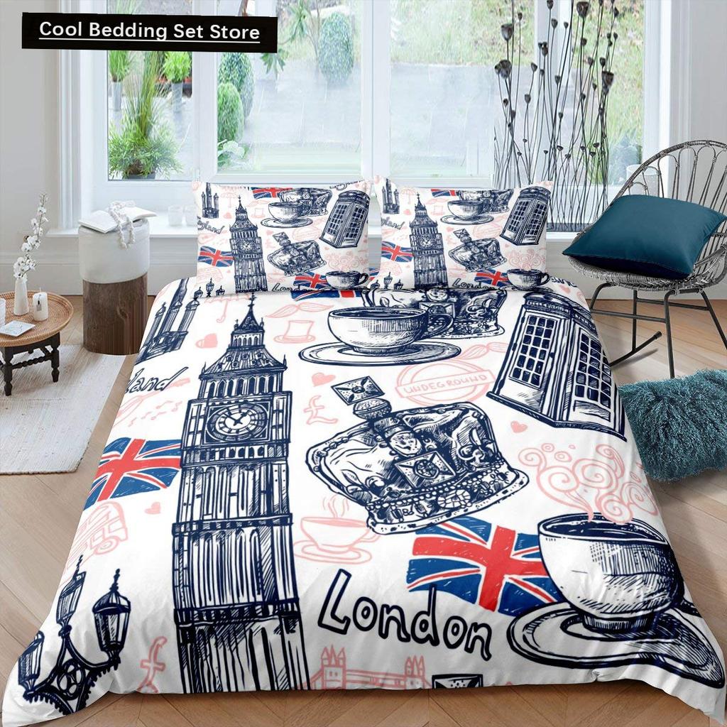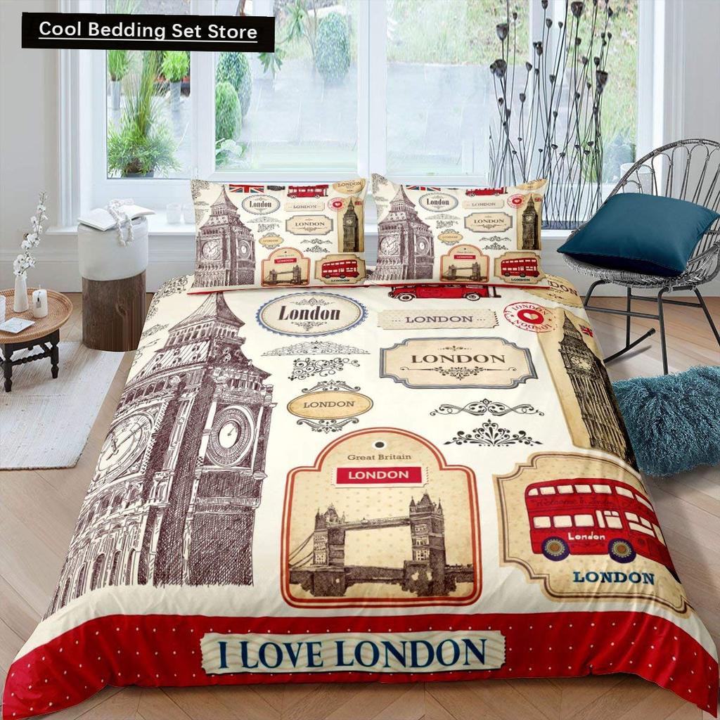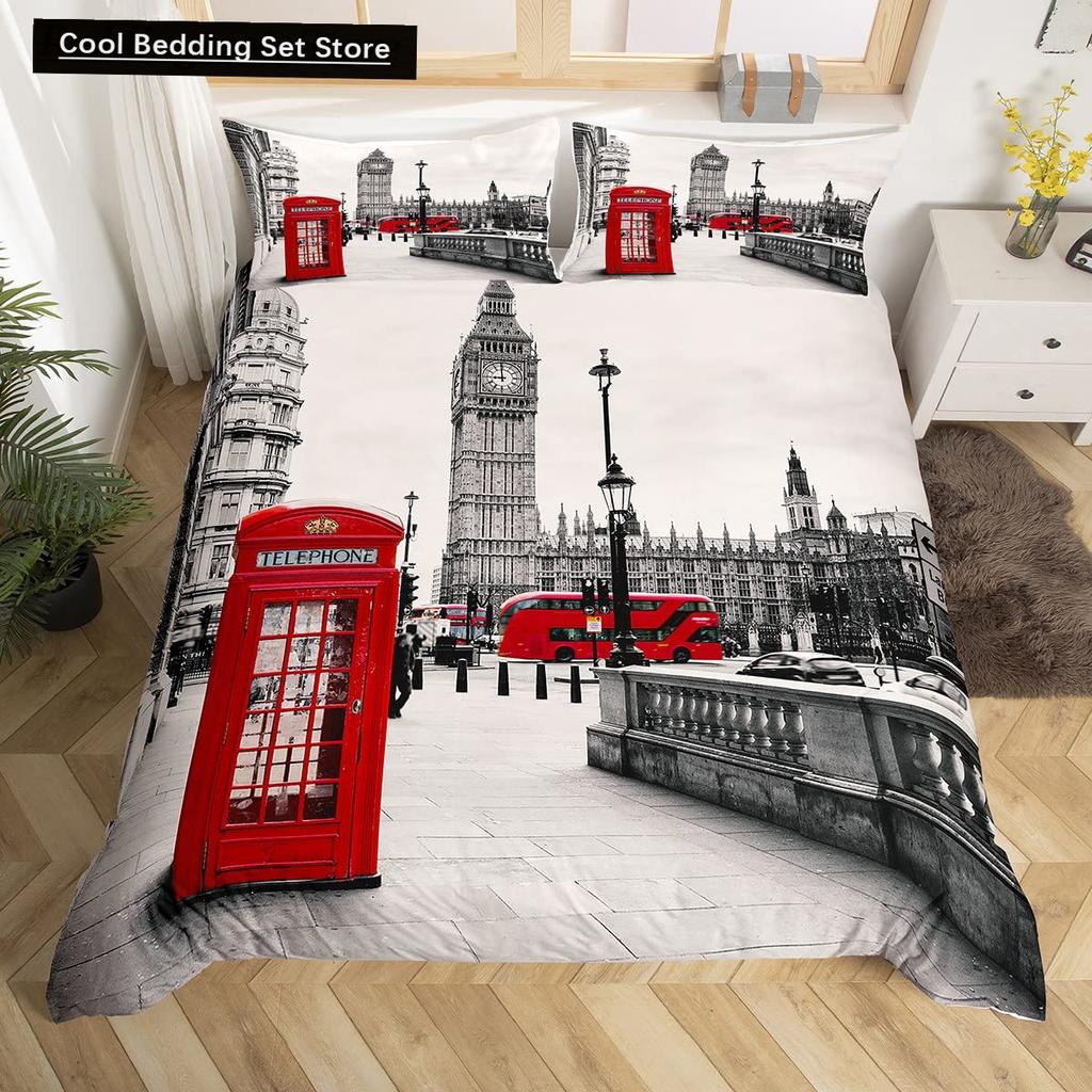 Пододеяльник «Лондонская телефонная будка» King Queen Постельное белье «Биг Бен» Ретро Соединенное Королевство Покрывало для пододеяльника Красный Серый Покрывало