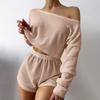 Женский летний пижамный комплект из двух предметов, одно плечо, длинный рукав, короткий топ, эластичная резинка на талии, шорты, повседневный домашний костюм