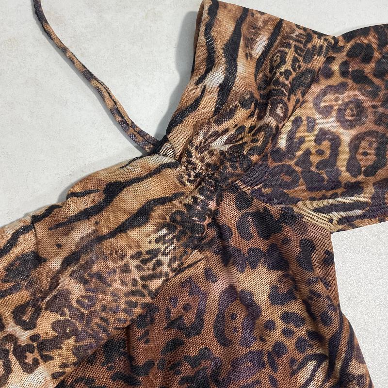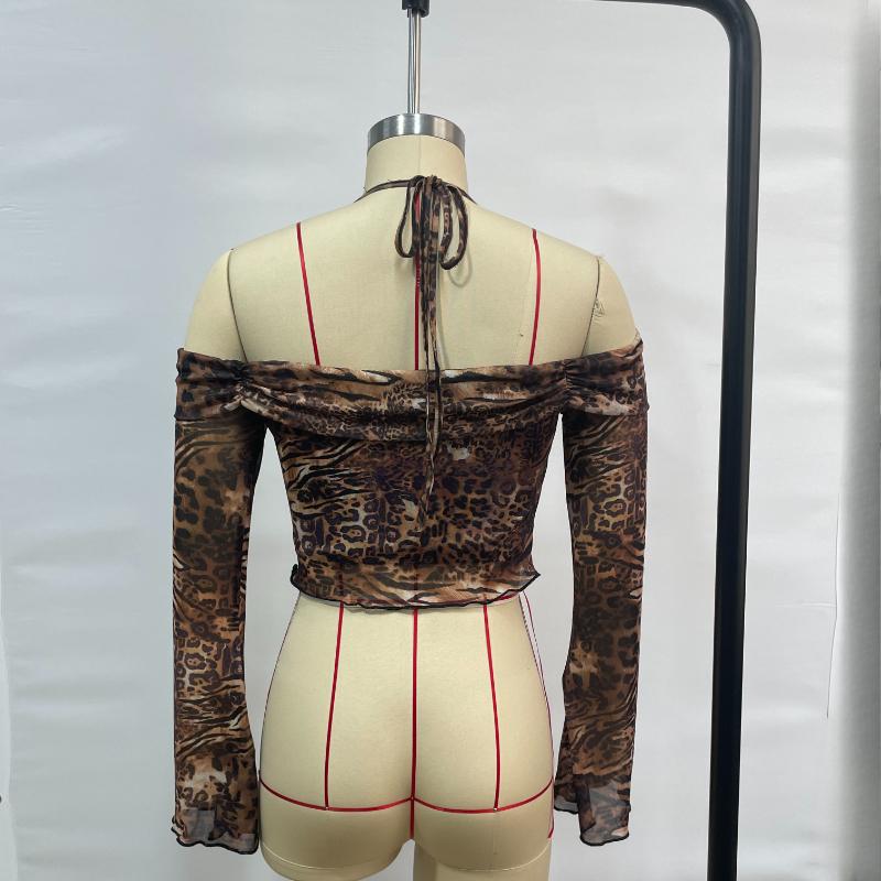 Модная облегающая футболка с расклешенными рукавами и открытой спиной, сексуальная укороченная женская футболка с леопардовым принтом, повседневная женская футболка без бретелек с бретельками 25902