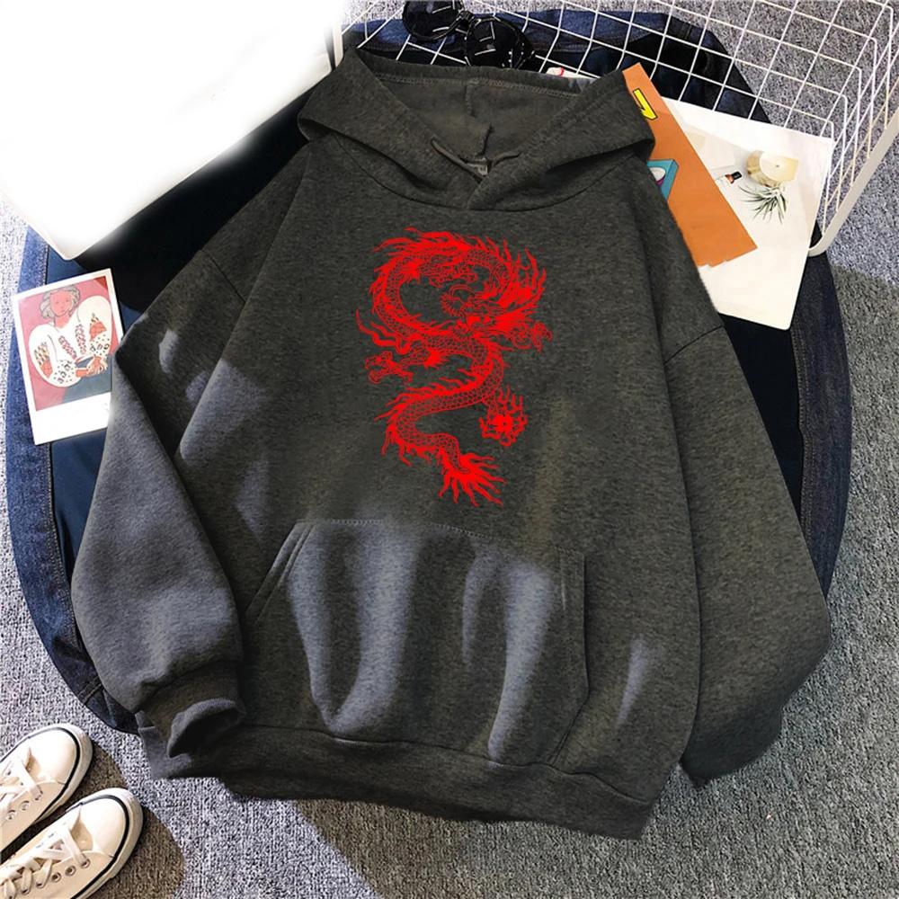 Модные толстовки с принтом красного дракона для мужчин и женщин с капюшоном, повседневные толстовки с капюшоном, свободные толстовки с капюшоном, свитера, унисекс, спортивные костюмы, одежда