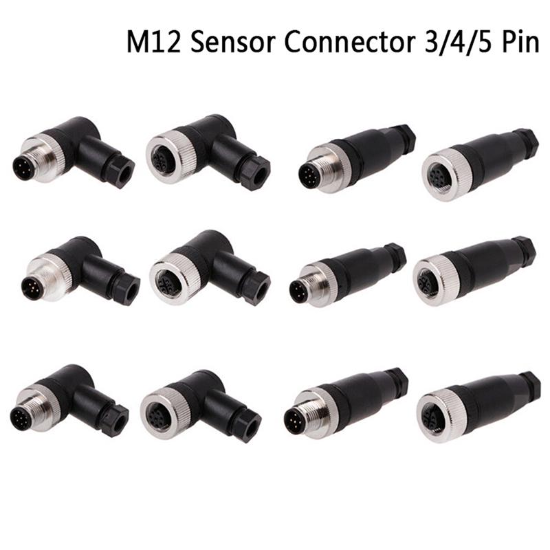 Разъем датчика M12, 1 шт., 3/4/5-контактный штекер/мама, прямой/прямой угловой штекер