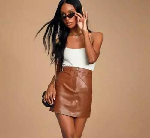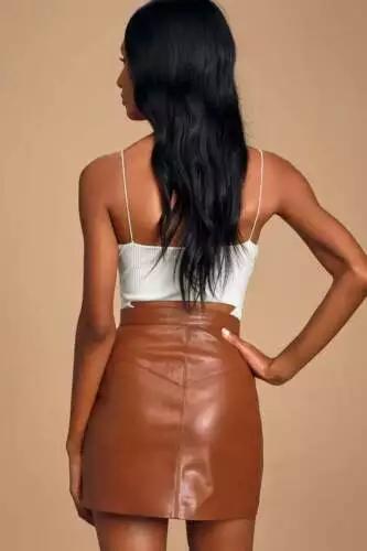 КОРИЧНЕВАЯ мягкая замшевая высокая талия натуральная кожа ягненка дизайнерская женская мини-юбка