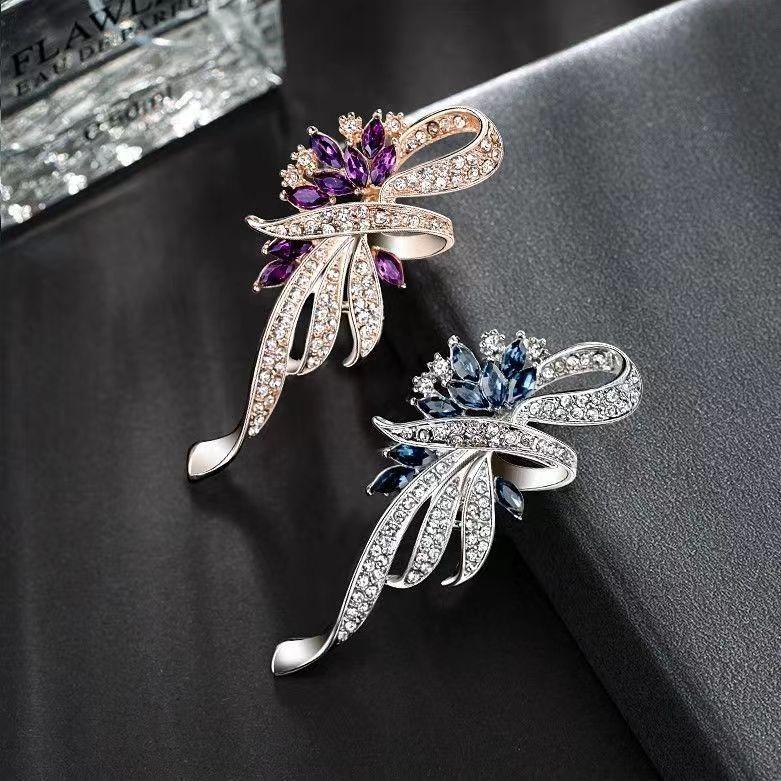 Высококачественная цветная бриллиантовая брошь для женщин, высококачественный нишевый костюм, украшение для пиджака, нагрудный цветок, темперамент, легкие роскошные аксессуары