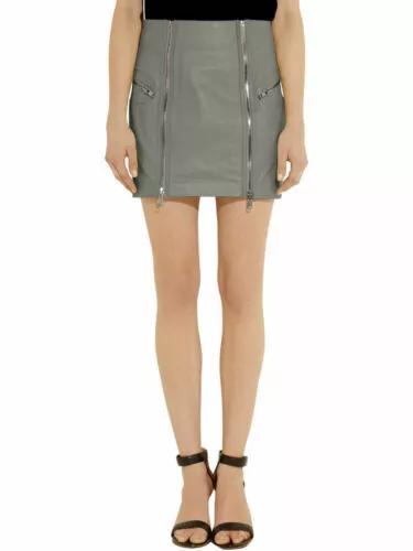 Серая юбка кожаная стильная женская с высокой талией карандаш мини мягкая овчина