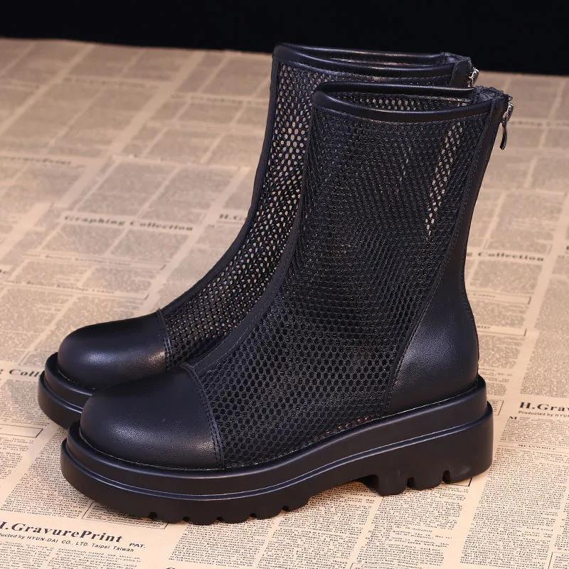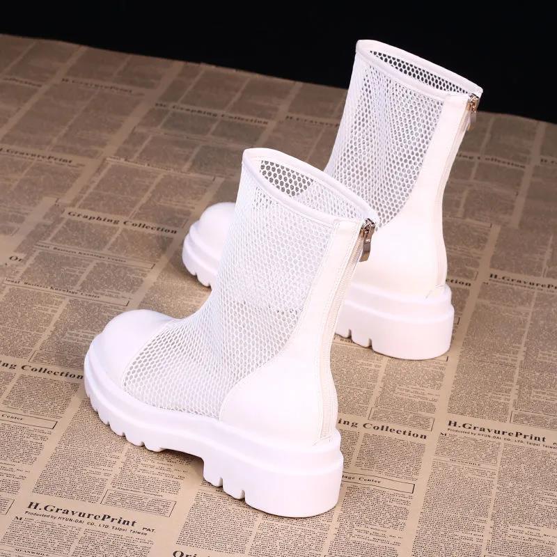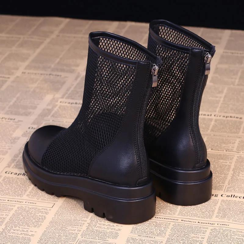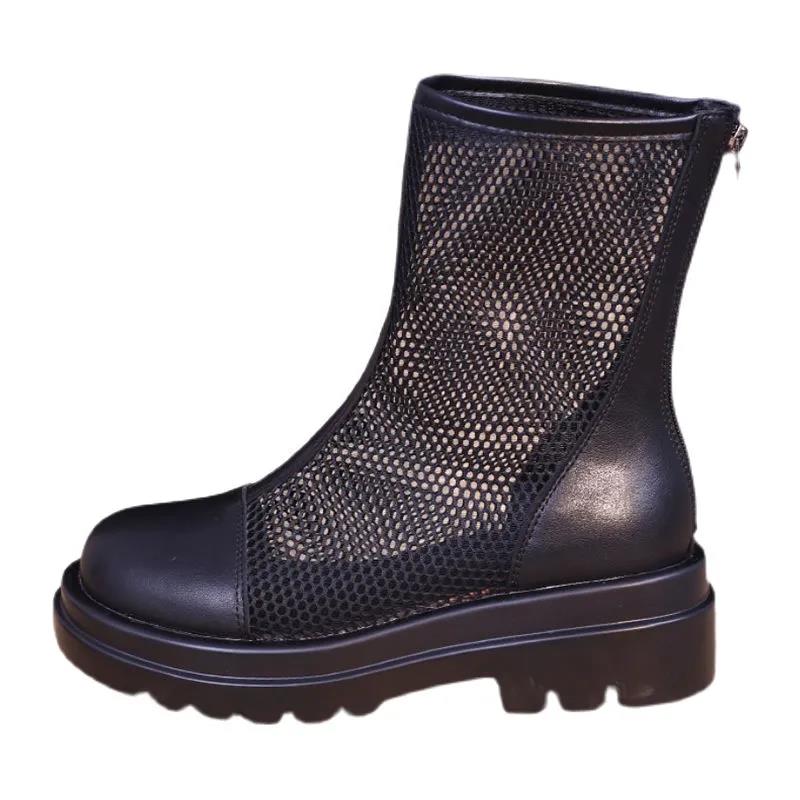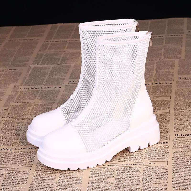 Высококачественные женские летние ботильоны на платформе, корейская версия британских сандалий на тонкой сетке, универсальные дышащие ботинки