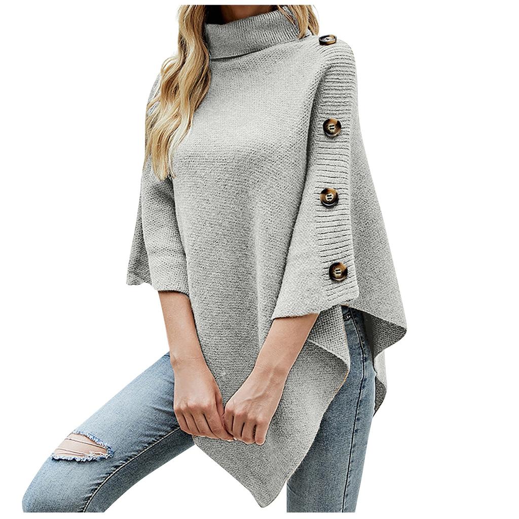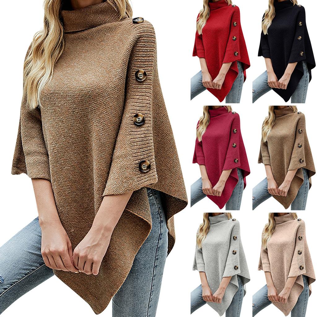 Модный теплый осенне-зимний универсальный свободный свитер с шалью и накидкой, однотонный вязаный свитер с высоким воротом через границу, женское пальто